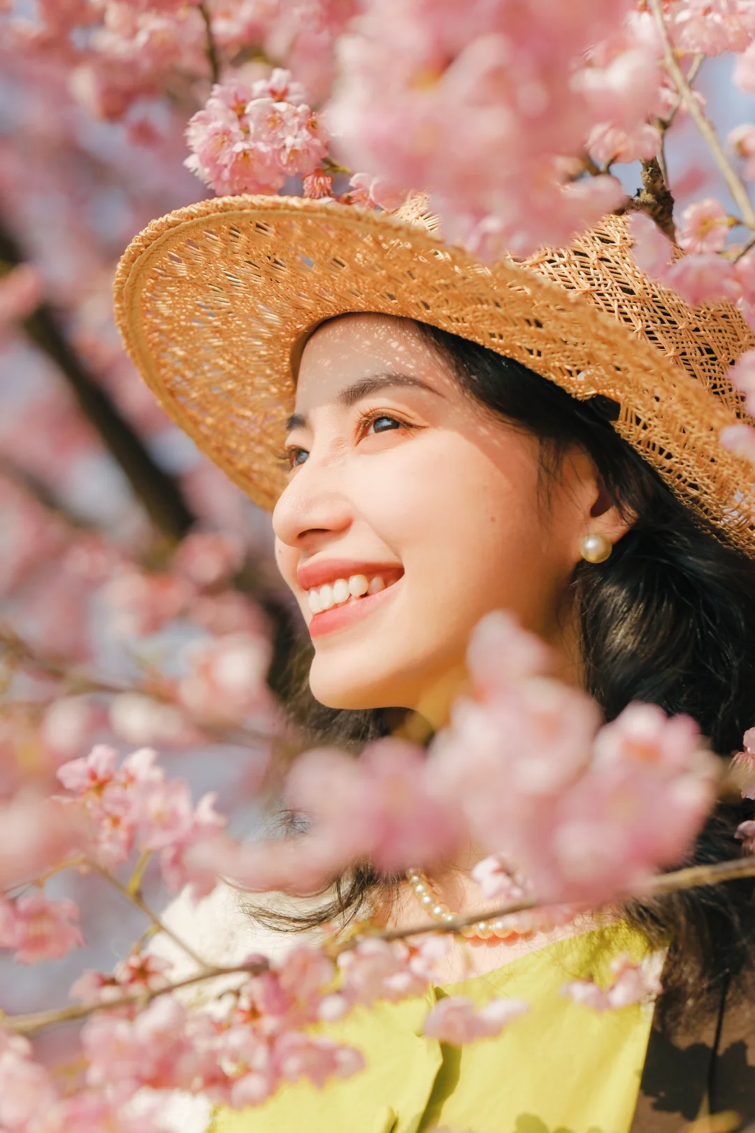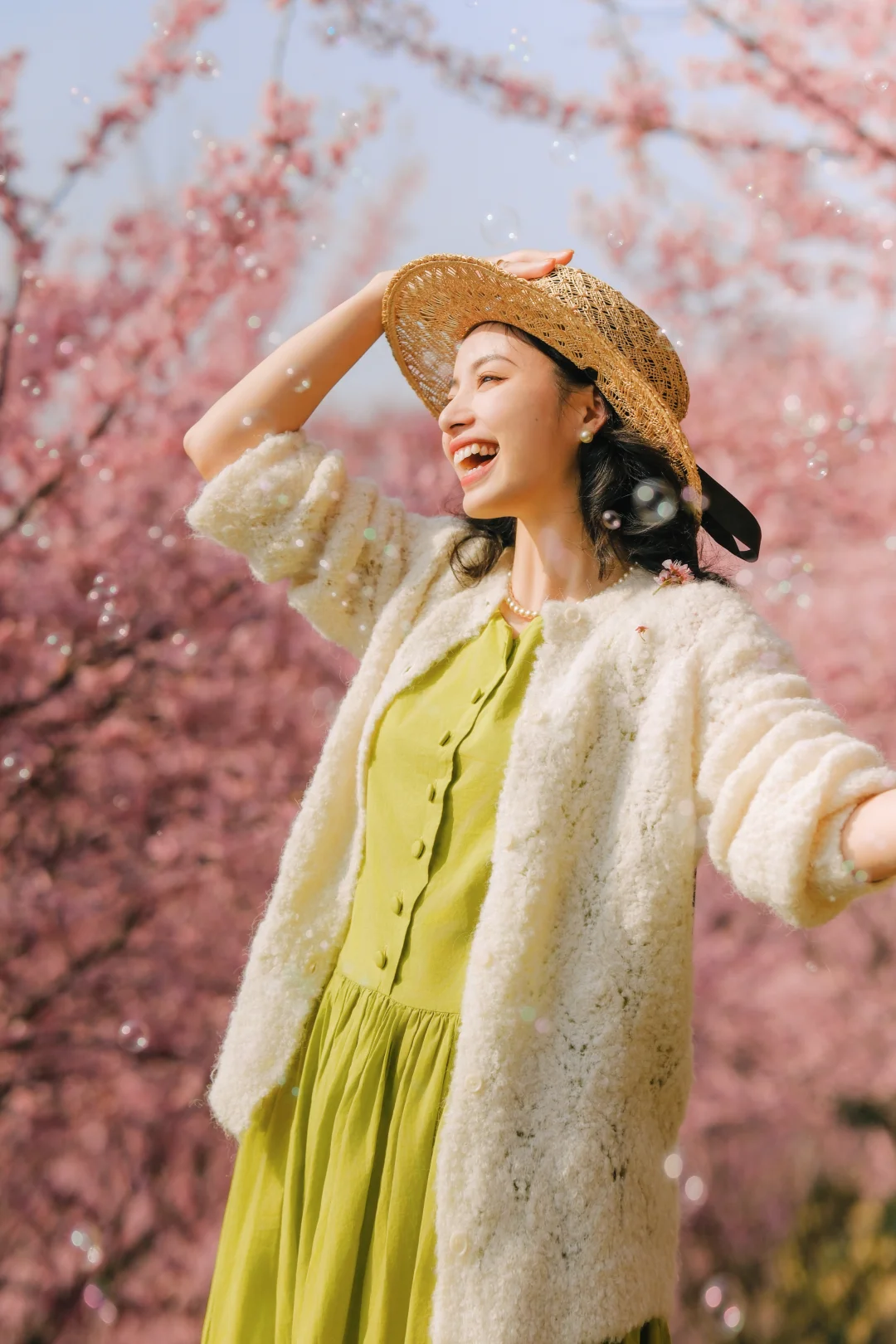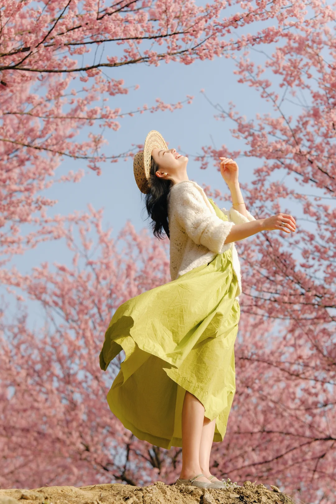 1️⃣黄绿色系好适合拍樱花,大家今年真的可以尝试一下,粉绿的色彩在画面里就很春天了!