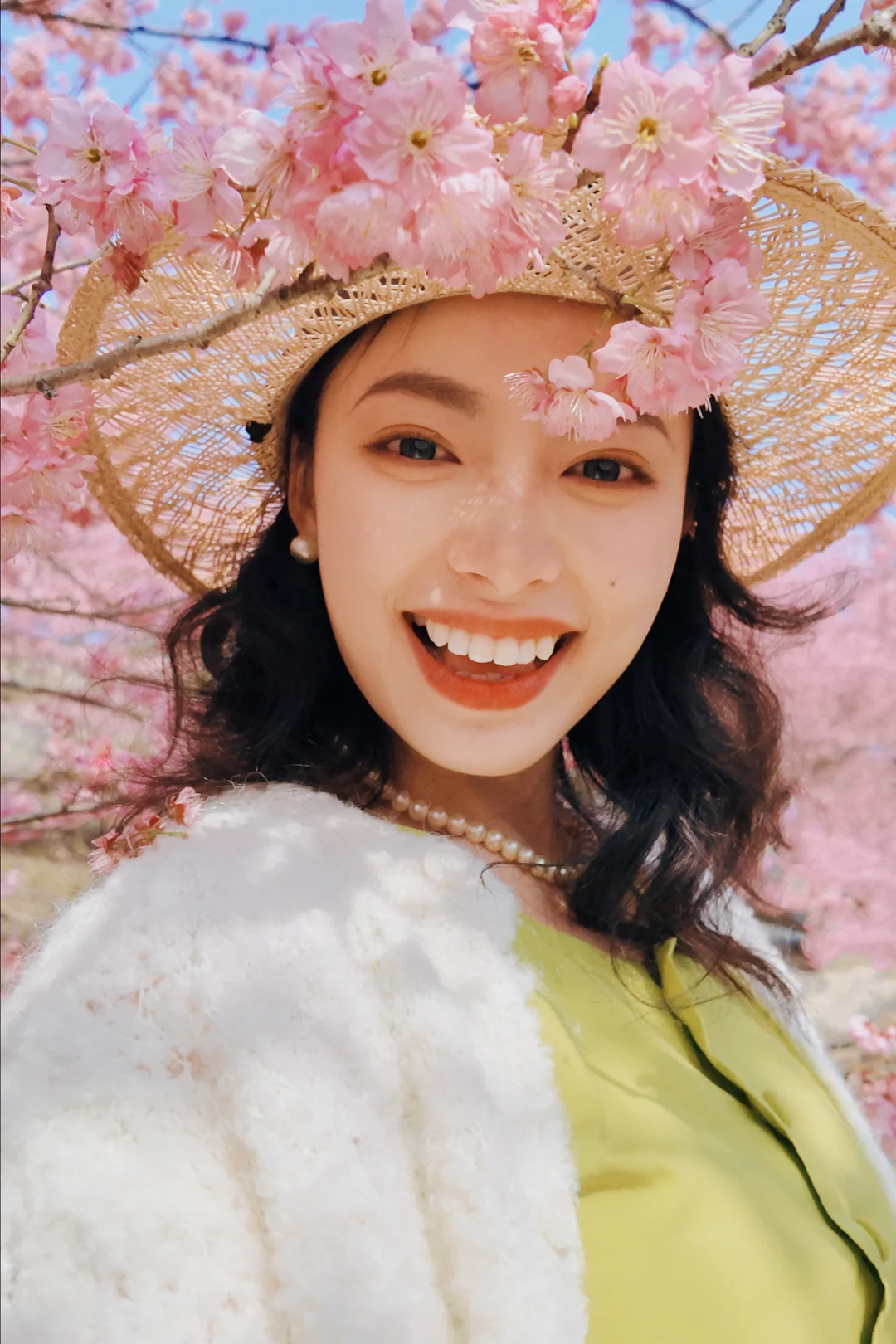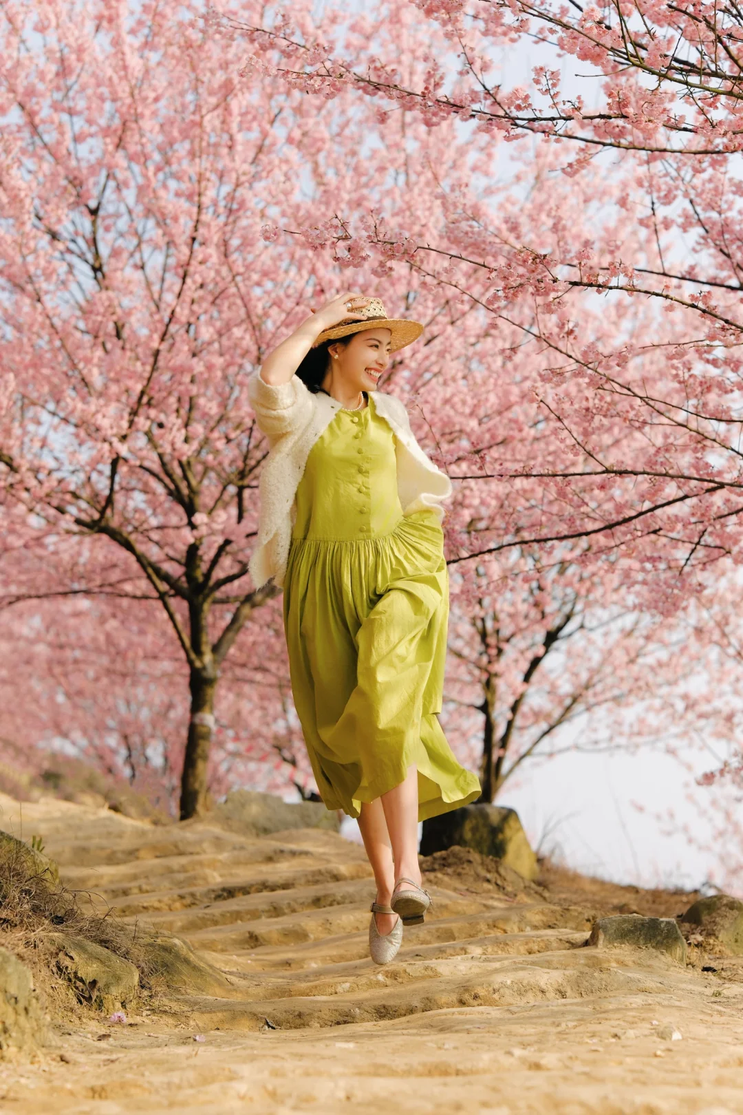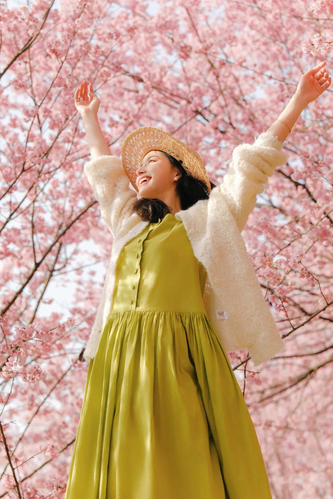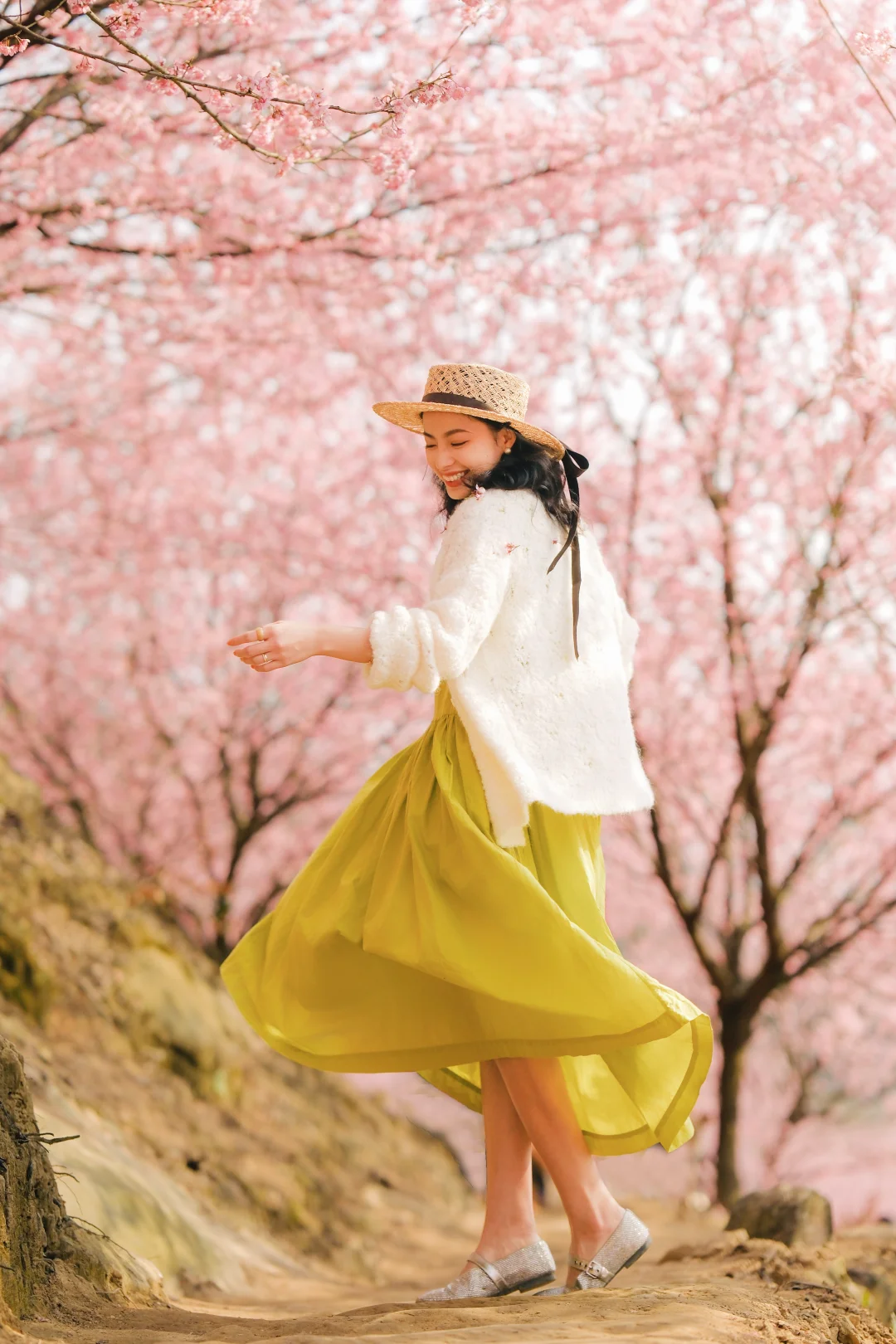 1️⃣黄绿色系好适合拍樱花,大家今年真的可以尝试一下,粉绿的色彩在画面里就很春天了!