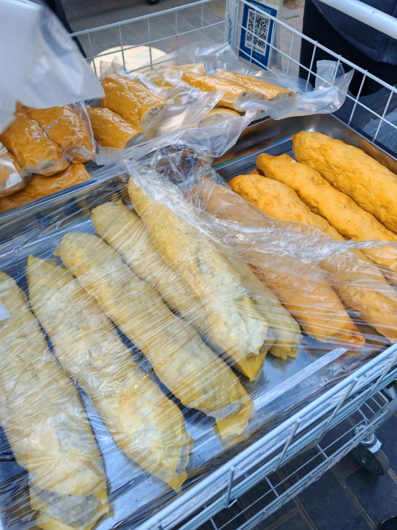 两个新鲜玩意儿 2月13日,坐标西安。今天早上逛市场,到处都是卖年货的,我见了两个稀奇玩意,见图一图二。 图一这个摊主说叫泾阳让饸,不知道是不是这两个字,她介绍说用猪肉肉沫和鸡蛋做的,是关中大席上的一道必需菜,切片可以直接吃,25元1斤。 图二这个是陕北特产,应该类似于年糕,摊主说用大黄米和红枣做的,切片后加热就可以吃,按斤称重购买,1斤10元钱。 我以前没见过,没买过,想不出是什么味道,今天每一种买了三个,反正又不贵,就是不知道买了会不会后悔,毕竟一方水土养一方人,南方人的口味跟北方人确实差异比较大。 你们是否买过这些本地特产,好吃吗?