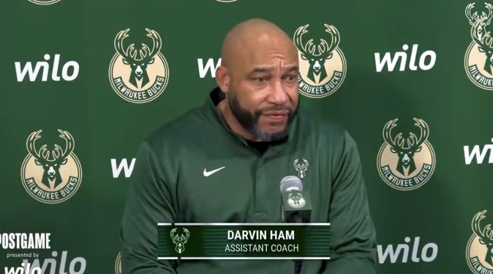 赛后,雄鹿助理教练达尔文-哈姆接受媒体采访,谈到了本场比赛。