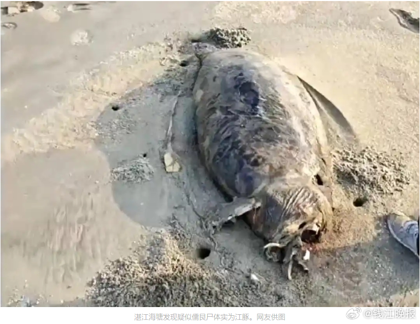#湛江海滩发现疑似儒艮尸体实为江豚#【广东湛江一海滩发现疑似儒艮尸体引关注,当地回应:是江豚】#官方回应湛江发现儒艮尸体# 据网友爆料,有观鸟爱好者于2月12日在广东湛江一沙滩上发现一头疑似儒艮的动物尸体,其体长超过1.5米,尾部埋在沙子里,头部腐烂严重。当天,有媒体报道,经当地相关部门证实,已经有工作人员在海滩现场看守,将等待中国科学院深海科学与工程研究所接收。2月13日下午,潮新闻记者从湛江吴川市农业农村局水产科获悉,经过鉴定,该尸体并非儒艮,而是江豚,“跟他们(深海研究所)对接过了,他们也抽样了,确认是江豚。”“根据专家的意见,因为腐烂严重了,基本上是没有太大的科研价值,将按照相关处置要求进行掩埋。”该工作人员表示,至于具体死亡时间和死亡原因,暂时不好说,“你留意后续有没有相关报道,我们也不好说。”据华中农业大学博物馆官网介绍,儒艮是一种生活在海洋中的哺乳动物,因其哺乳时用特化的鳍肢拥抱幼仔,头部和胸部露出水面,宛如人在水中游泳,所以被称为“人鱼”。成年儒艮平均身长在2.7米,最大的可以达到3.3米。(潮新闻 记者 季建荣)