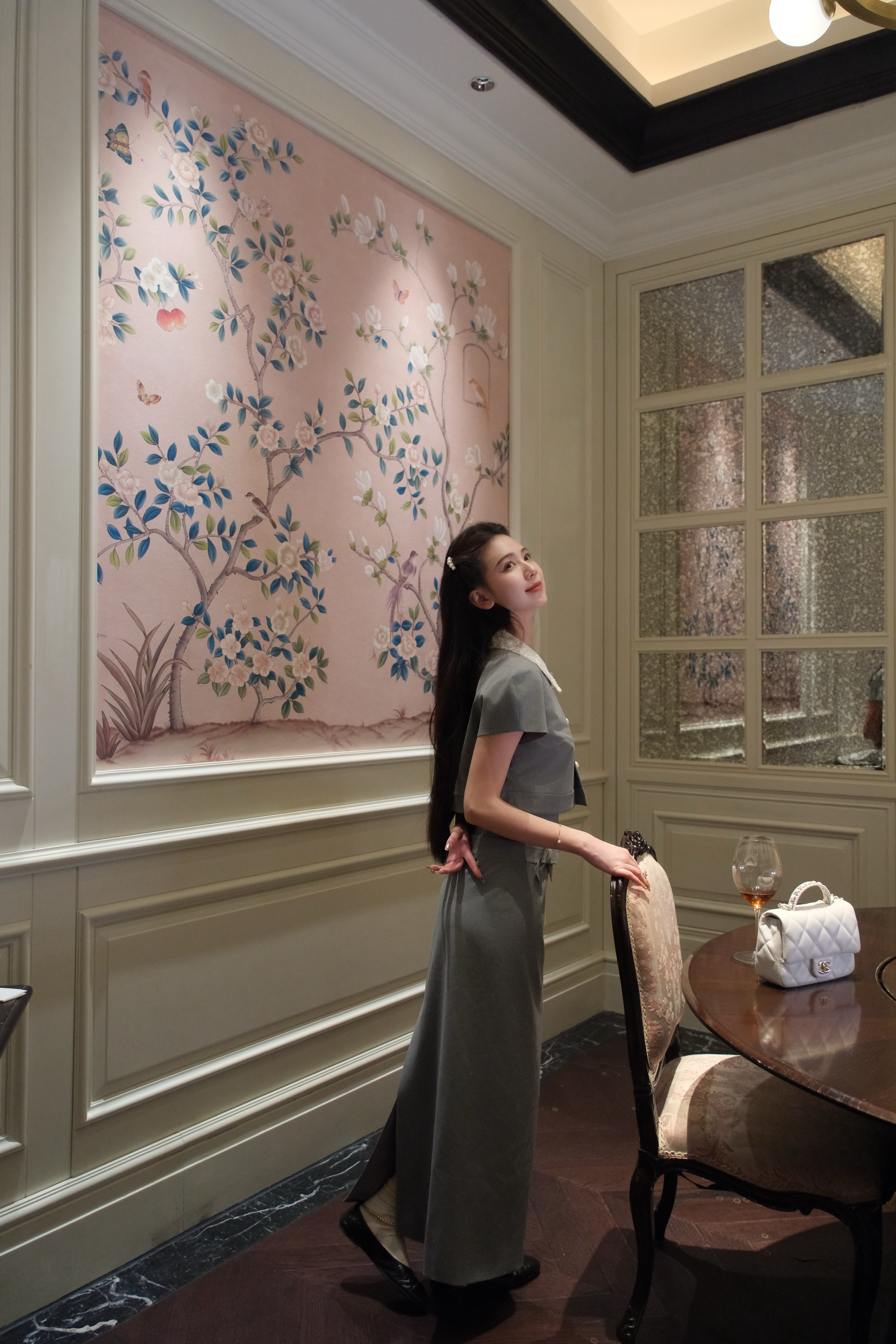 美图欣赏,看图写诗,情感解读《巷隅闲步》七言绝句:紫袂轻垂倚木扉,青