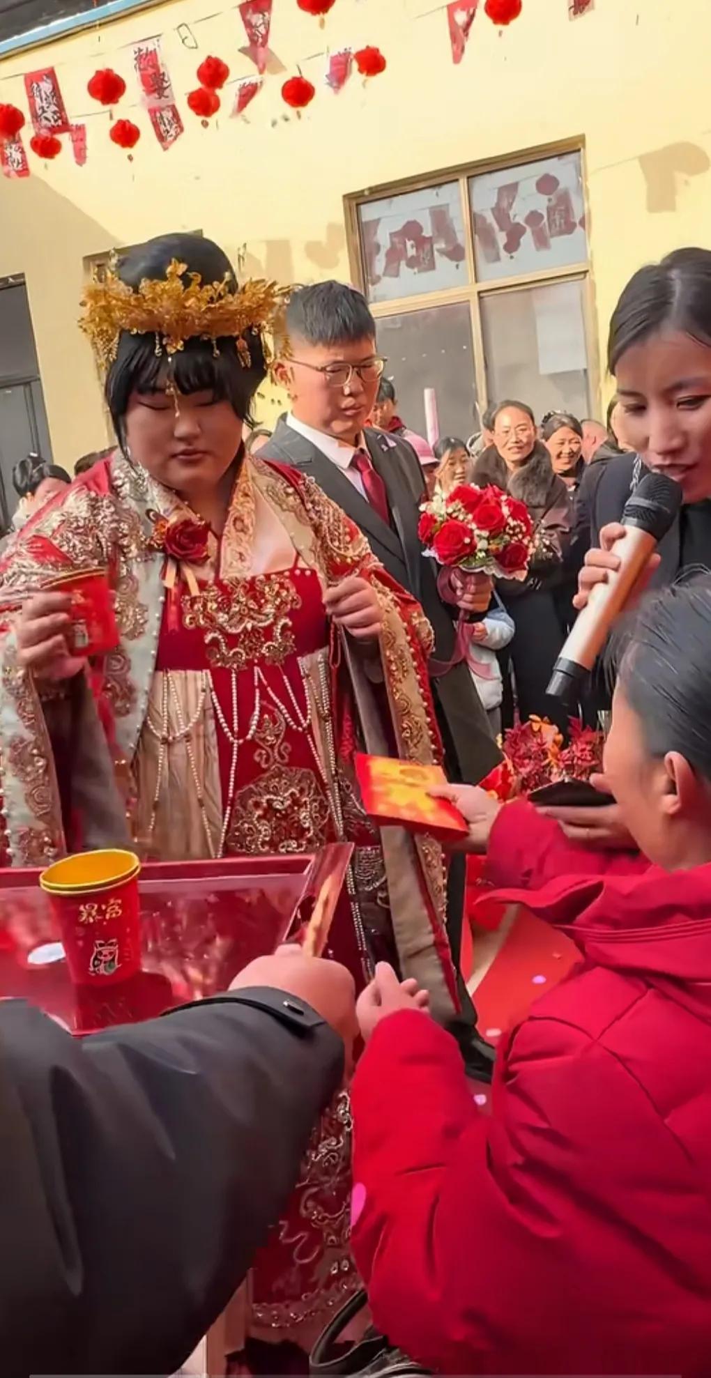 地主家的胖女儿,大衣哥女儿朱雪梅长得很漂亮的,新郎官看着还满脸不高兴,配他绰绰有