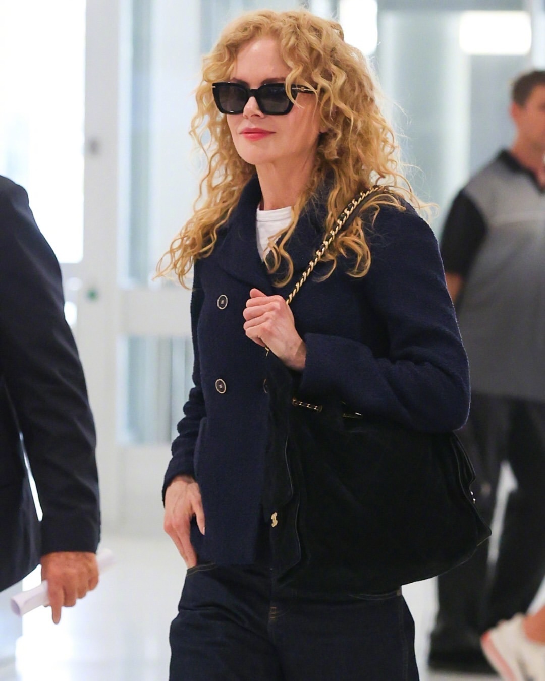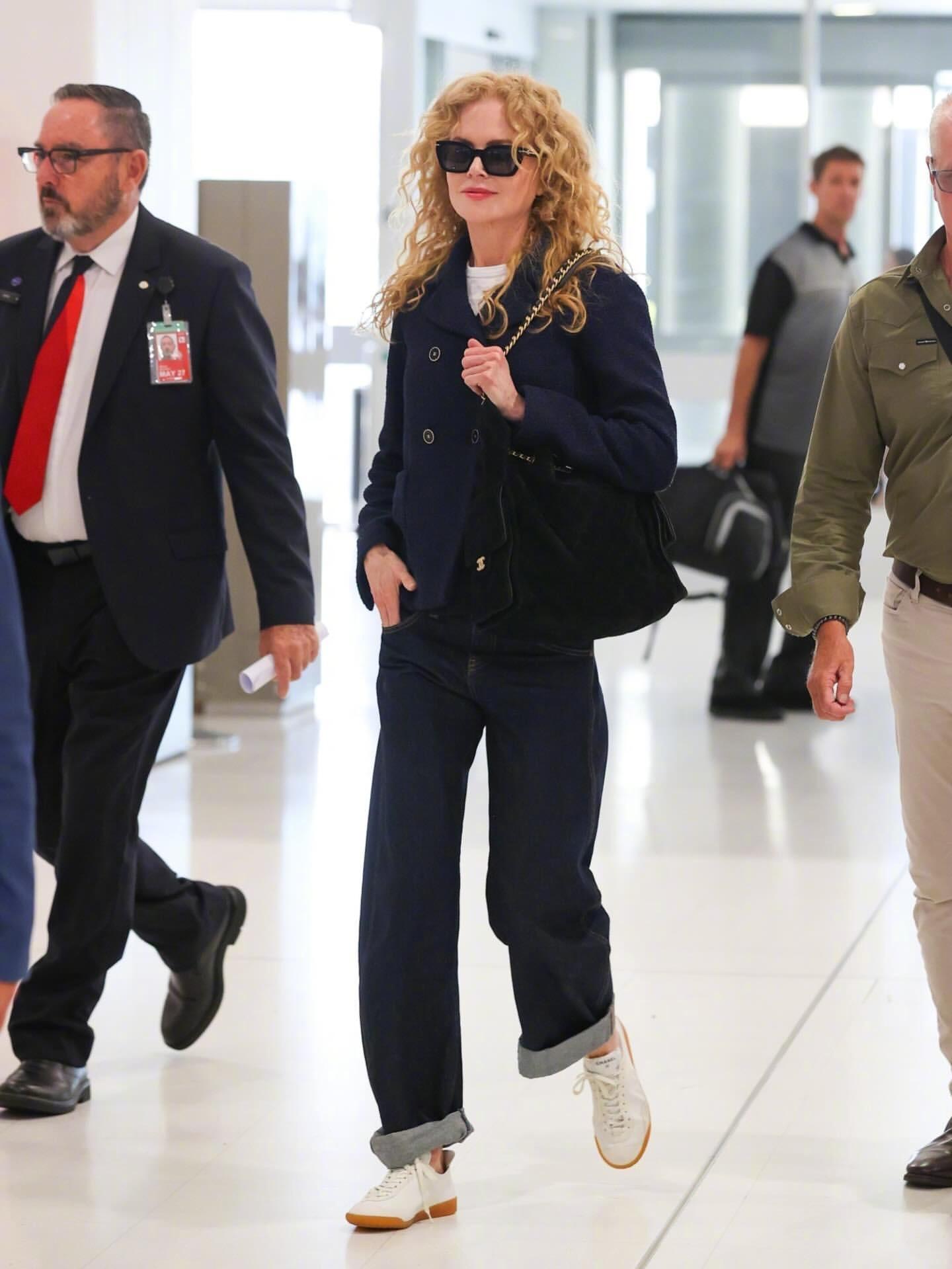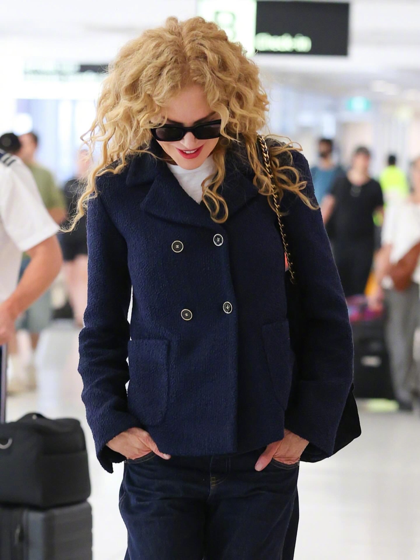 妮可·基德曼现身澳大利亚悉尼机场,全套香奈儿,一头爆炸金发小卷,优雅离境。称职的