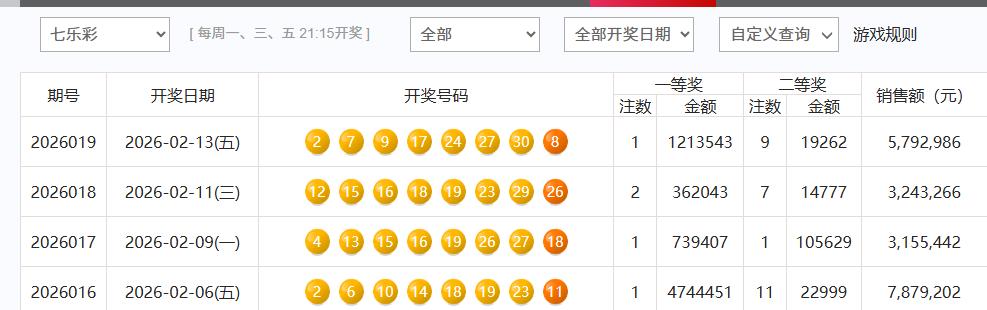 昨晚开奖的七乐彩,又中出了一注一等奖,单注奖金121万,被山东彩友摘得。其实,很多人都不玩七乐彩,该玩法每期全国销量只有几百万,但是,这个玩法特别有意思,那就是几乎每期都有人中一等奖,奖池里的奖金几乎每期都会被掏空。 节前最后一期七乐彩全国销售金额5792986元,虽然是全国性游戏,但是,参与的人并不多,或许很多人并不知道这种玩法,甚至不屑于参与,不过,部分喜欢的彩民还在坚持。且该玩法出一等奖的概率比快乐8选十、七星彩等都高。 最近四期,期期出一等奖,少则36万,多则121万。本期还有9注二等奖,单注奖金不到2万。这种玩法就像打不死的小强,不管你买或者不买,它一直都在。 鸿水说
