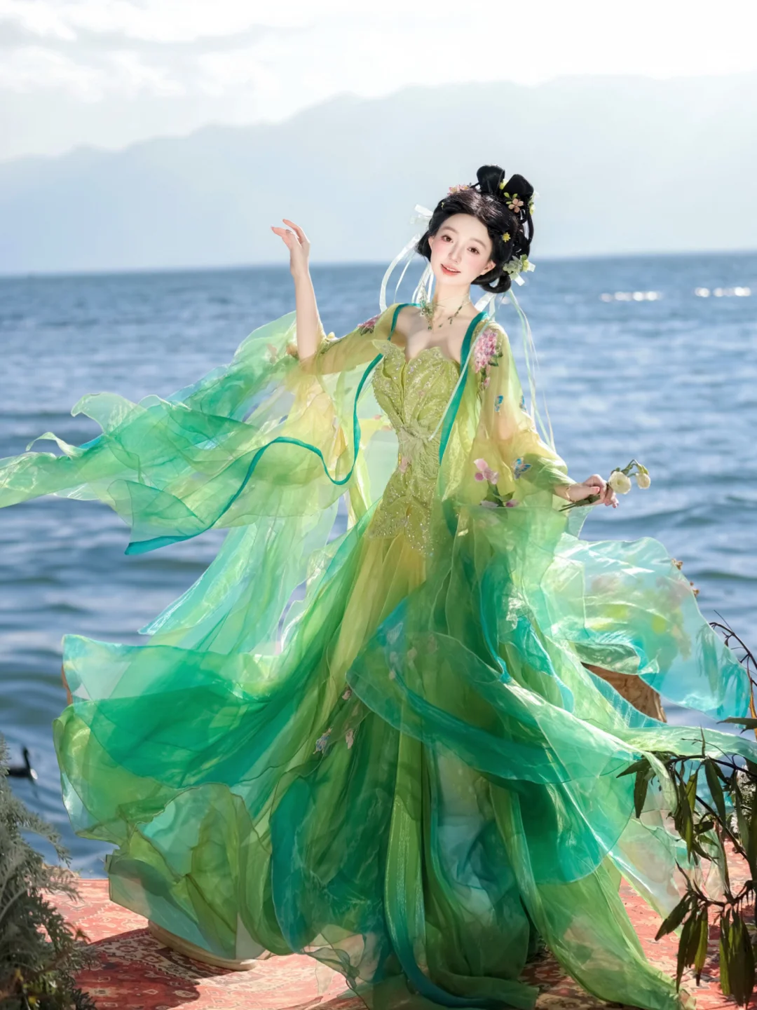 “万条垂下绿丝绦。” 做了一套春意盎然的改良汉服~ 1000颗水钻💎手工缝制在身间,如精灵一般,灵动而富有生命力🌿🌿🌿 国风穿搭 千黛远山 应是绿意晓声浓 应是绿意晓声浓 绿色