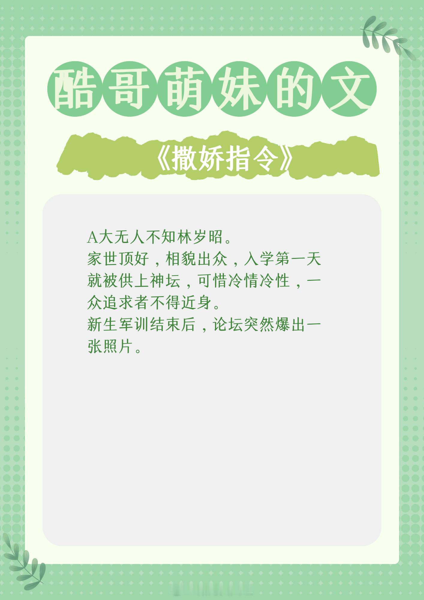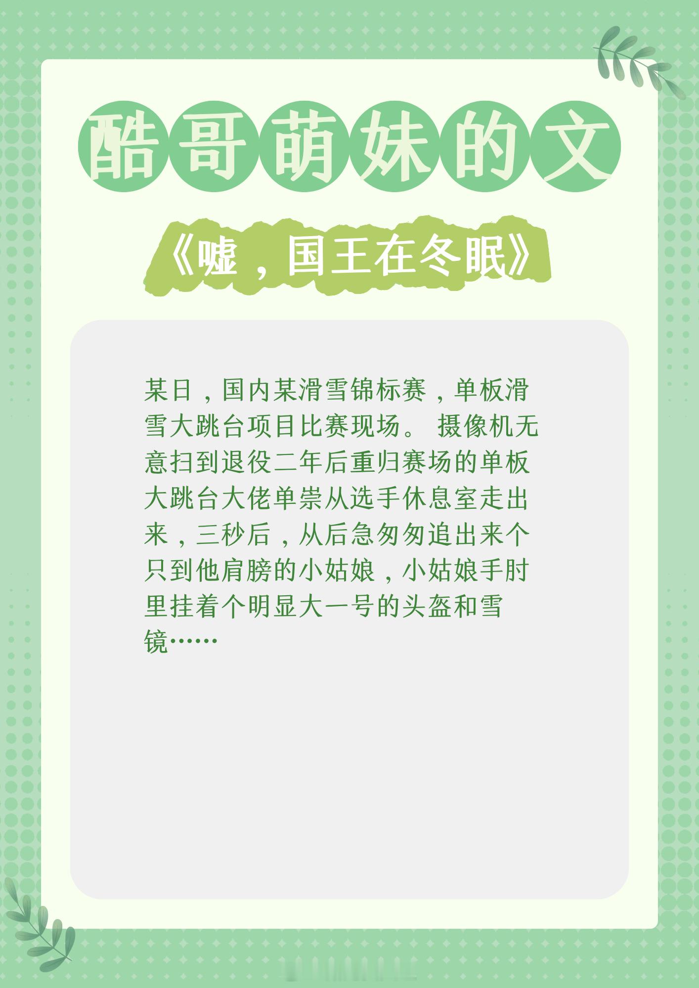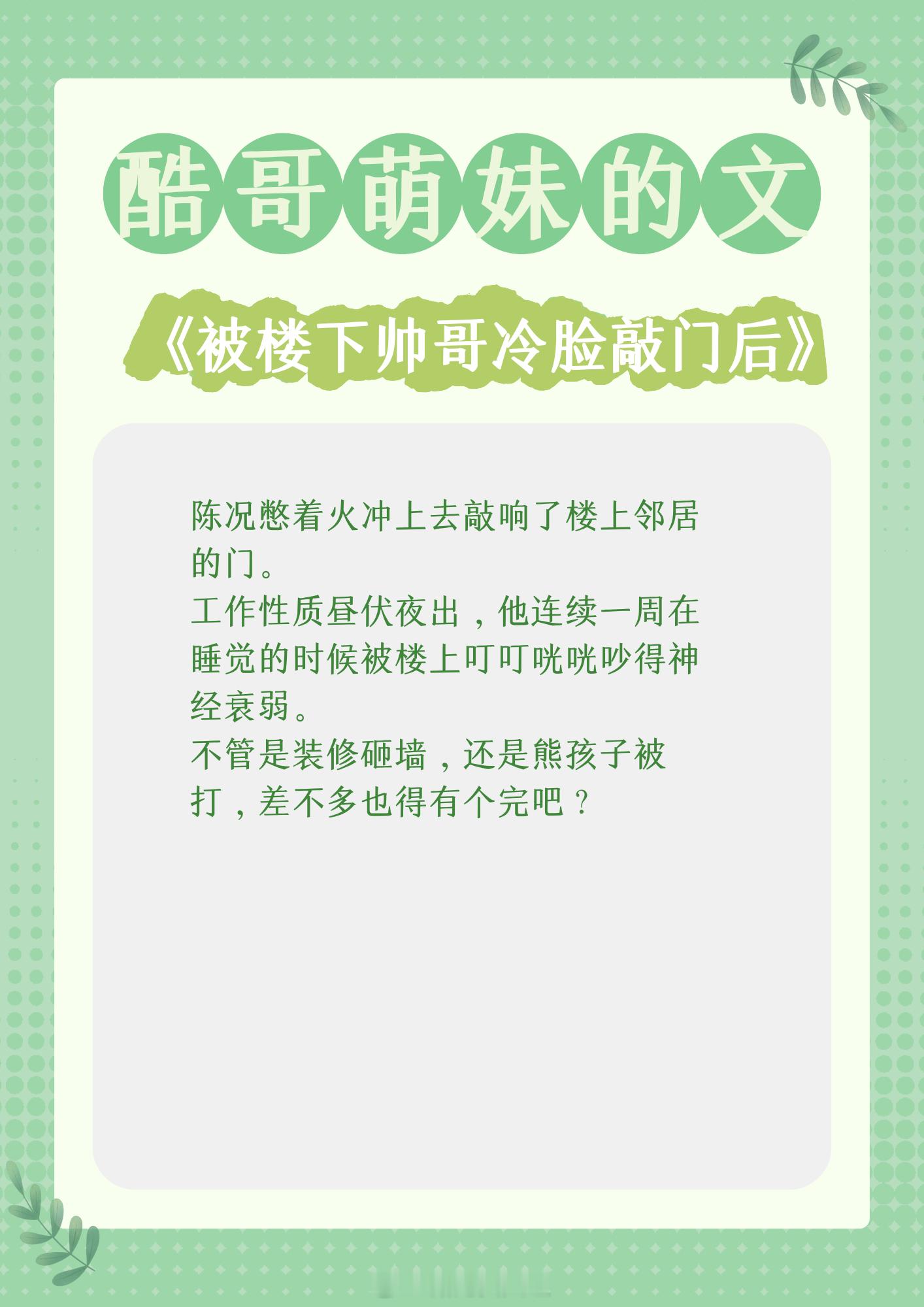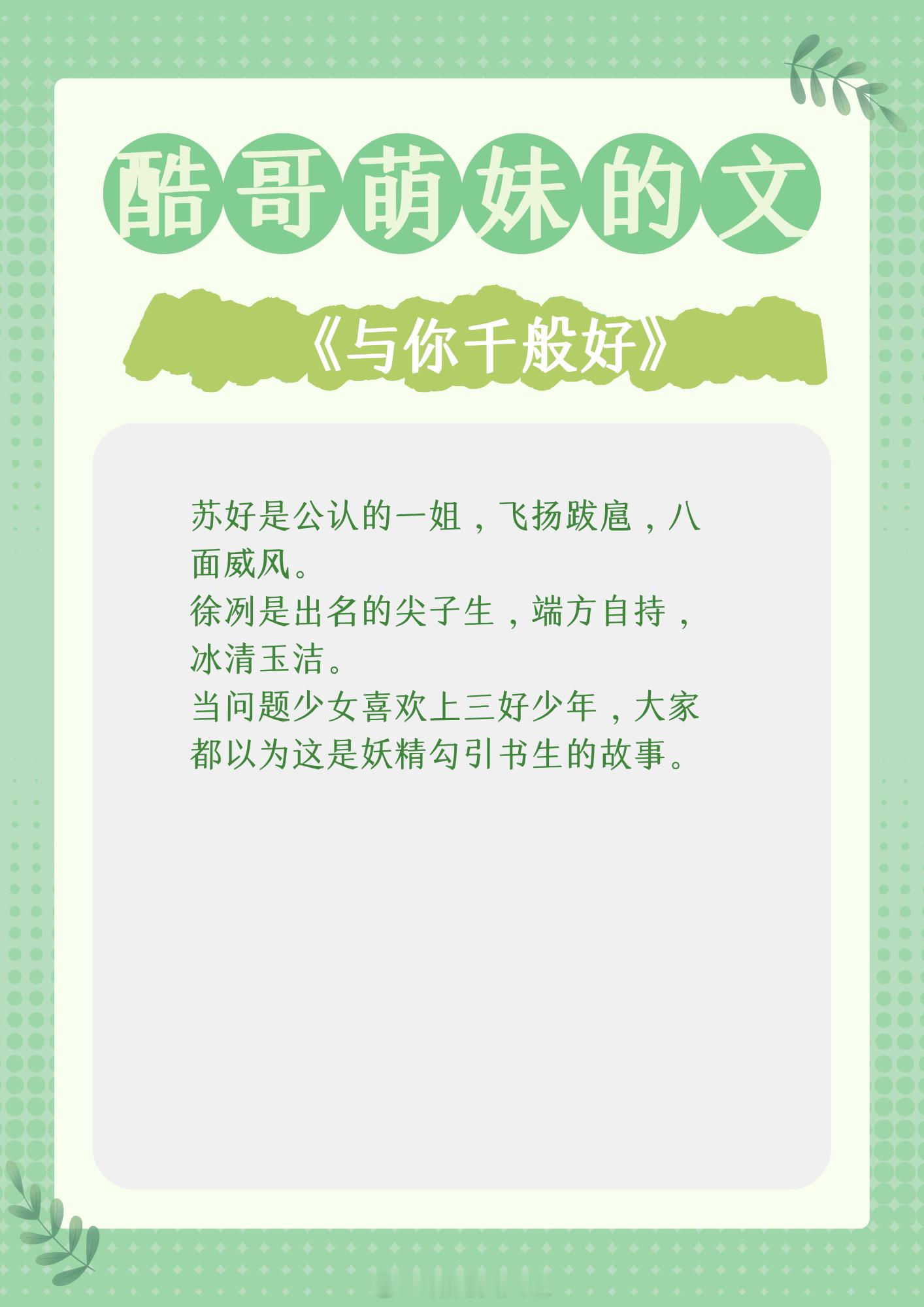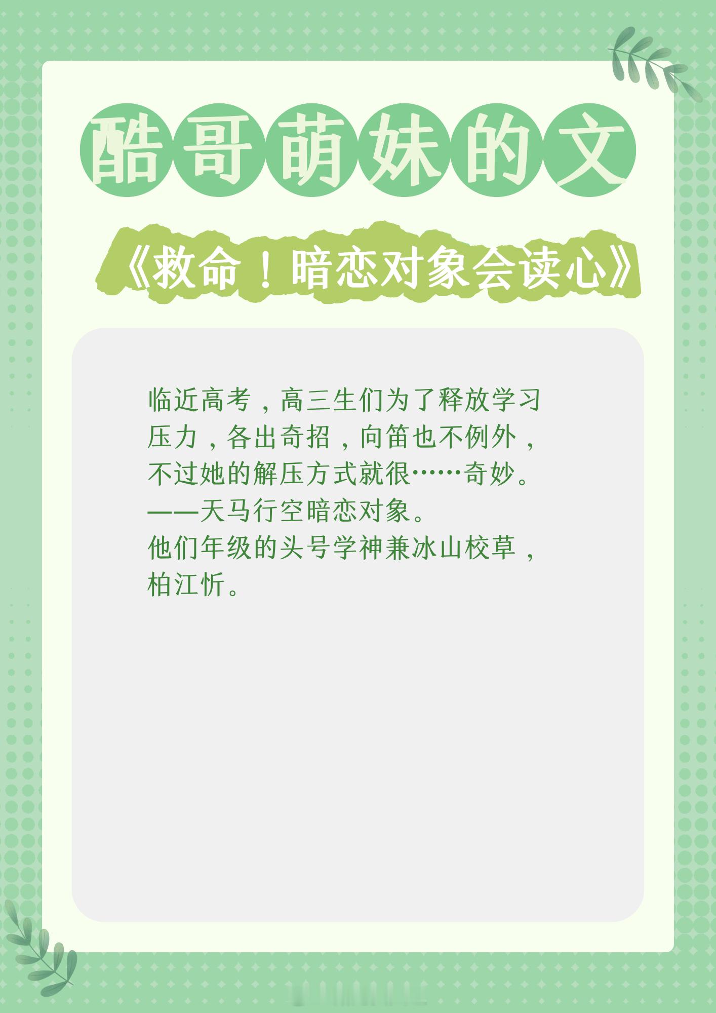 酷哥萌妹的言情文,每天都在暗恋对象面前社死!1、《嘘,国王在冬眠》作者:青浼2、《救命!暗恋对象会读心》作者:图样先森3、《被楼下帅哥冷脸敲门后》作者:醇白4、《撒娇指令》作者:今烛5、《迷津雪》作者:周镜6、《大雨落下的瞬间》作者:折卷7、《去看星星好不好》作者:咬春饼8、《重回老板年少时》作者:林绵绵9、《与你千般好》作者:顾了之这小说写在我心趴上了 那些让我着迷的小说