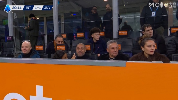 直播吧02月15日讯国米vs尤文第31分钟,镜头给到看台,阿德里亚诺、巴乔在现场观战!