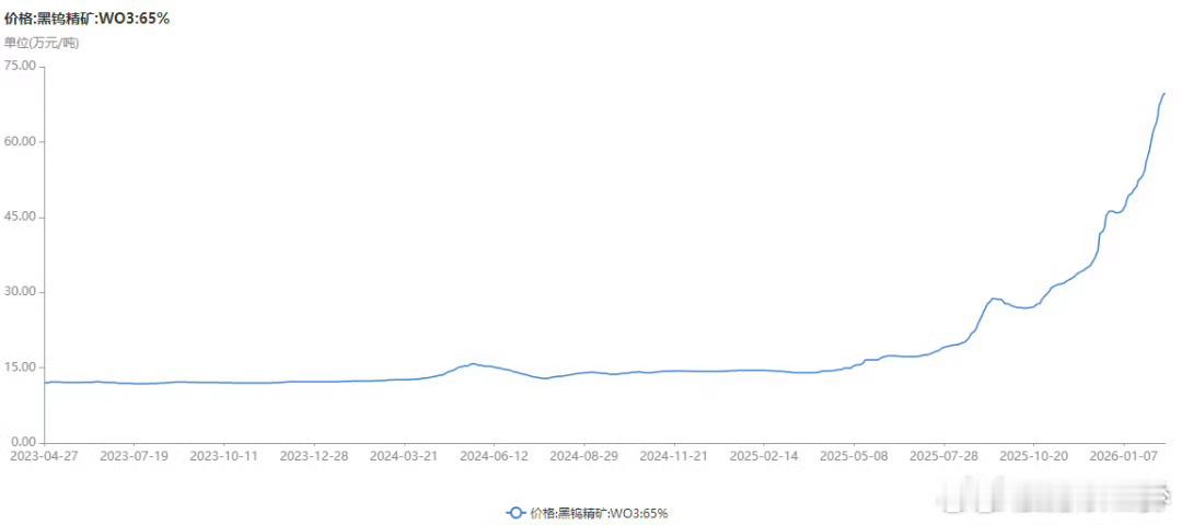 【钨价开启跳涨模式 】据Choice数据,截至2月12日,黑钨精矿(品位≥65%