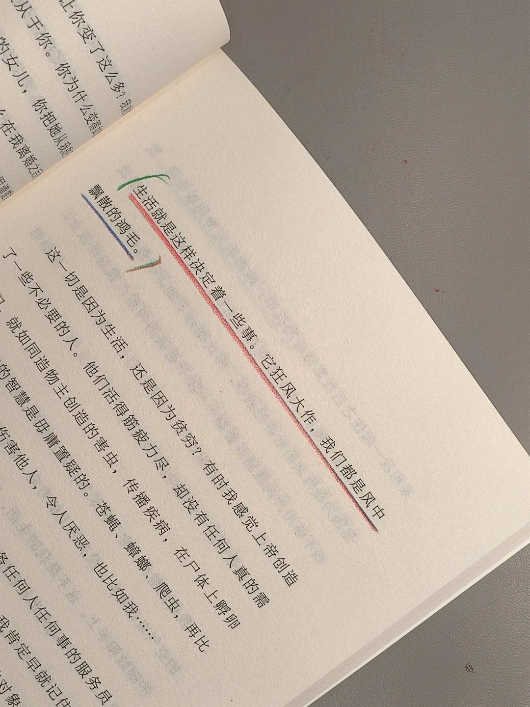 “生活狂风大作,我们都是风中飘散的鸿毛。”