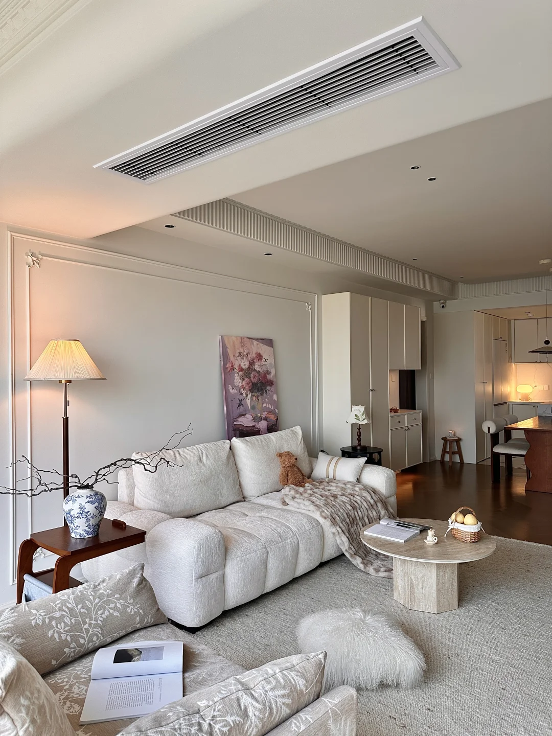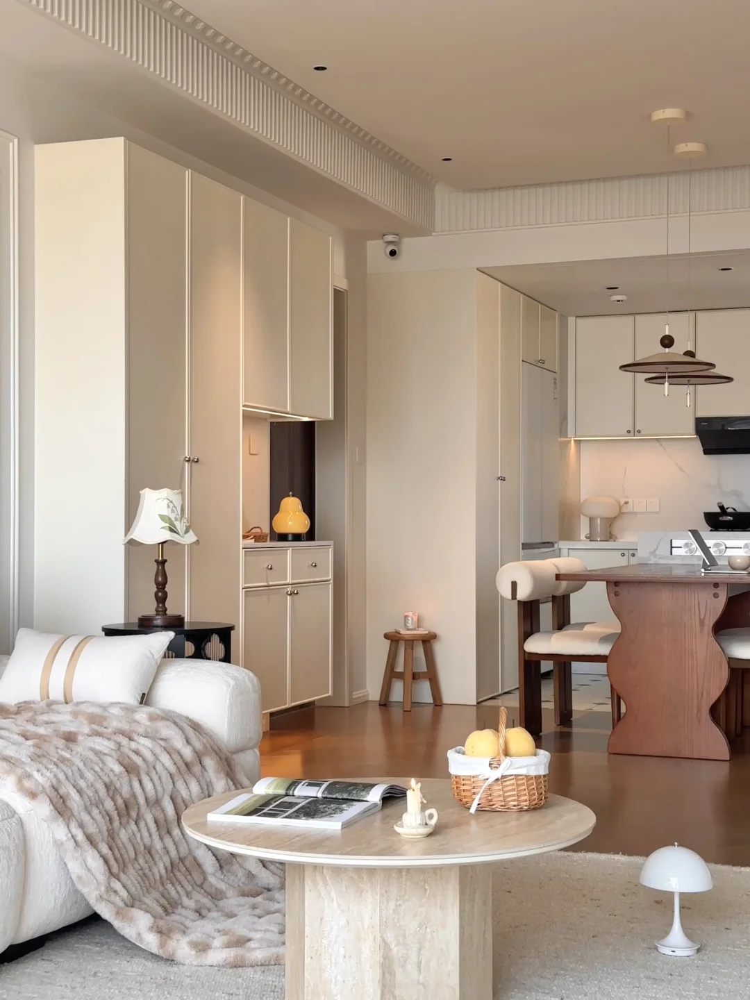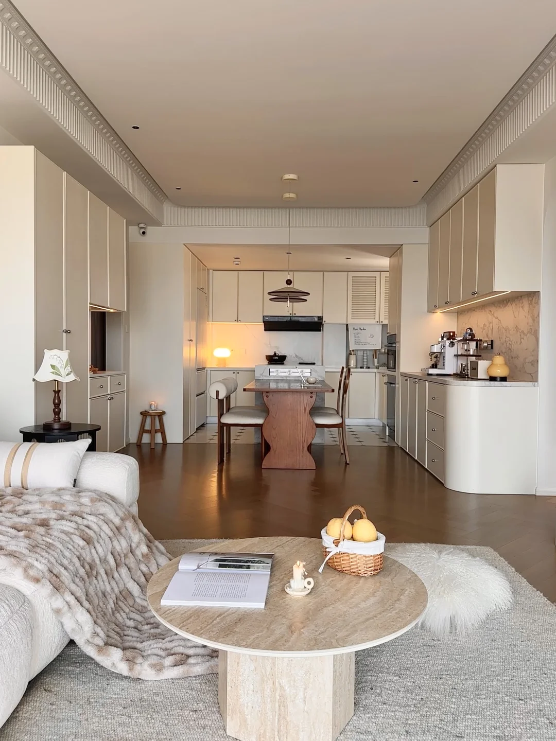 . 关于我家 建面119套内92平~ 自己设计装修的房子,真的越住越爱 打通厨房和餐厅做成了开放式的格局 整个空间都变得更开阔了 硬装简简单单通刷白色乳胶漆 无主灯设计,通铺木地板 . 每一个角落都布置成自己喜欢的样子 餐边柜做60cm深可以放日常小家电 客厅白色沙发搭配羊毛地毯松弛感满满 餐厅用1.8米的木纹餐桌用餐和办公都很合适 我想普通人的家,没什么特定的风格 耐看,温馨,舒适就够了~