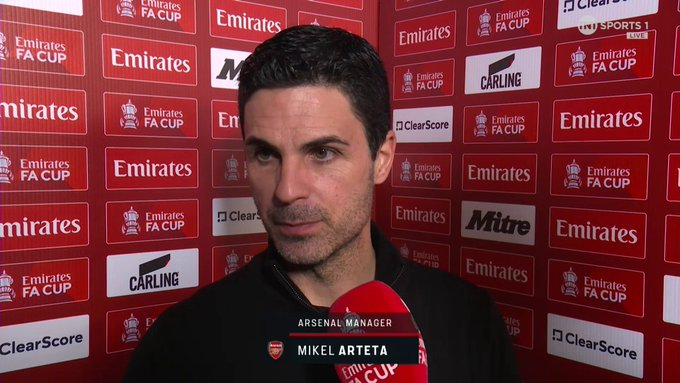 虎扑02月16日讯阿森纳主教练阿尔特塔在4-0击败维冈竞技的足总杯赛后,接受TNTSport采访。