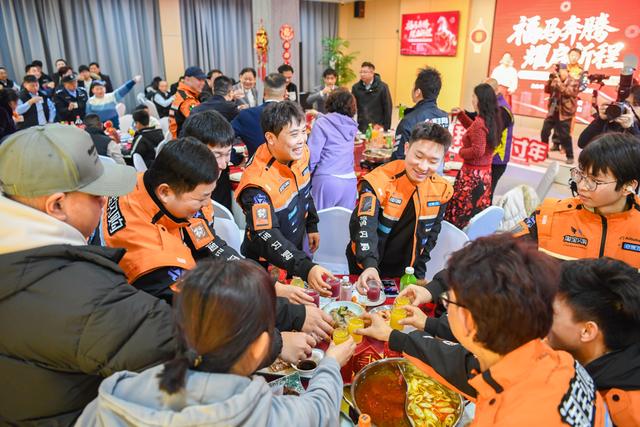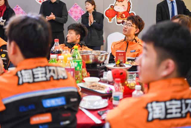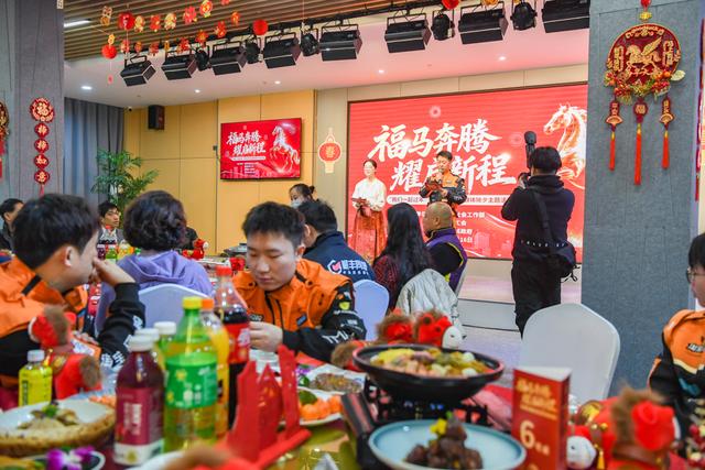一顿团圆饭,年年如约至;一份牵挂心,久久不曾改。在除夕当日与广大新就业群体们一起热热闹闹聚上一聚,在普陀俨然成了一种习惯。新杨居高司机之家党群服务站内,春联高挂、年味浓郁。平日里穿梭在大街小巷的“城市摆渡人”,暂时放下奔波的脚步,有的将个人留影制作成明信片寄回老家分享快乐,有的动手包上美美的饺子和汤圆体验家乡味道,有的用拓印拓上新春祝福为工作生活留下纪念,有的尽情挥洒笔墨写下对未来的美好憧憬。大家举杯互致祝福,畅谈城市变化,聊着生活收获,欢声笑语不断,在温馨热闹的氛围中,卸下一年辛劳,收获满满归属感。