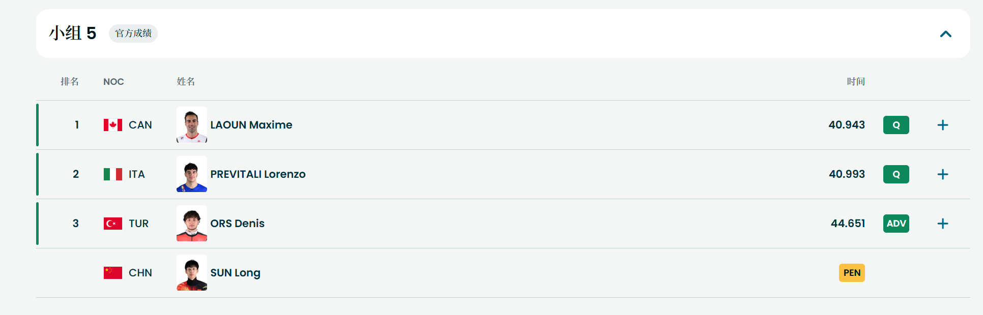 孙龙第五组出发,膝盖缝针带伤作战,比赛中与土耳其选手发生碰撞被判犯规,无缘晋级1/4决赛。