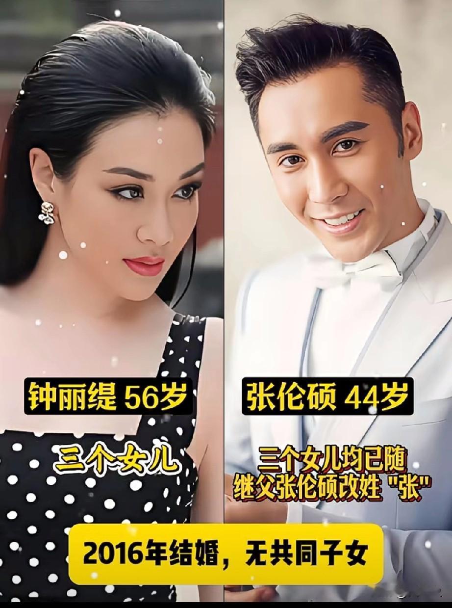 好可惜!和张没有娃 两个人颜值这么高56岁的钟丽缇,三段婚姻三个女儿,如今三个女儿均已随继父张伦硕改姓 "张",家庭温馨美满!