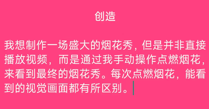当我的手指点击屏幕底部的烟花时,就会出现绚丽的烟花秀。这里我还增加了一个彩蛋。当我触发了三次烟花秀之后,屏幕上就会出现烟花形态的艺术字:女神生日快乐。