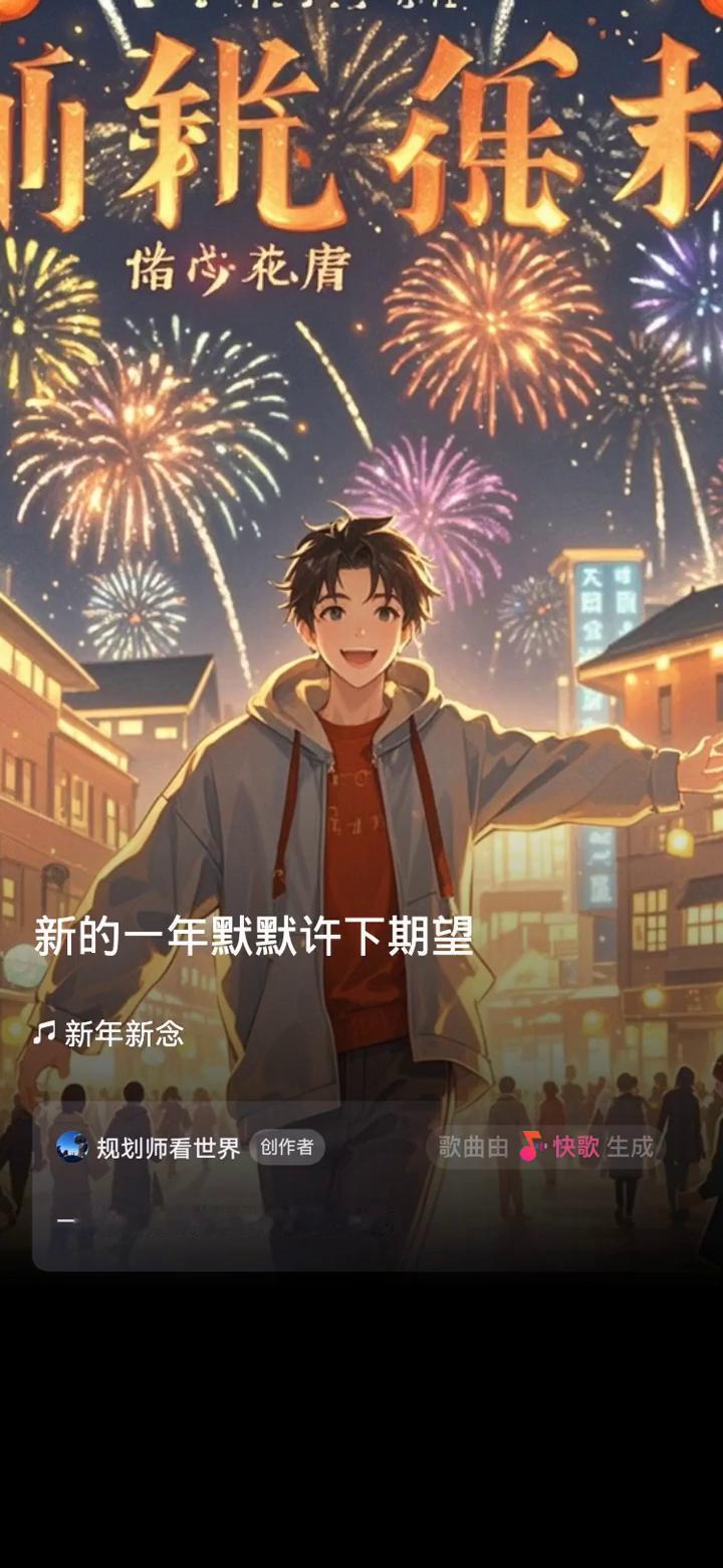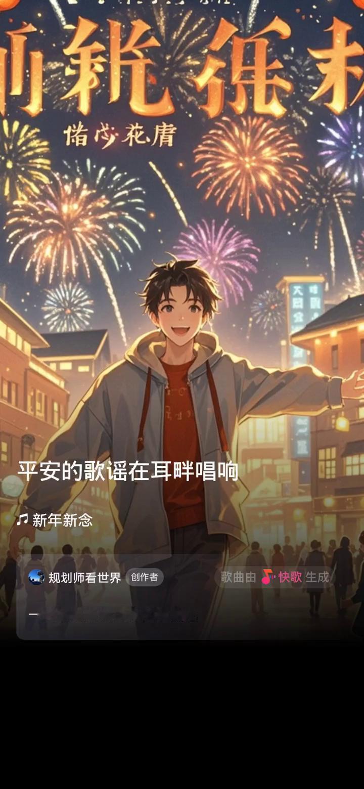 新年钟声激昂地轰响,新年新念。 规划师看世界创作者。 歌曲由快歌生成,一起来听听我创作的歌曲。 五彩烟火梦幻地混响响亮,城市的喧嚣街巷弥漫希望的微光,人海浪潮奔涌流淌,牵挂在心底肆意疯长。牵挂的你呀,牵挂的星空中宝藏,生命闪烁着生活的荣光。你生长童年天真模样,夏日里摇曳的娇嫩丁香,灵动双眼装满对生长的渴望,笑声能让阴霾都逃亡。 我忧虑你生气遇暗礁阻挡,雏鹰受挫陷入生活迷茫,我恳请生命把呵护都延长,你在晴空里自在地翱翔。校园生活应是欢乐的交响,却难免有暴雨偶尔来降,我怕你生活烦恼悄悄捆绑,泪水模糊逐梦的方向。年少的你不羁的劲风一样,青春在天地间尽情释放,我担忧你迷失在繁华中央,世俗的漩涡生命卷藏。 新的一年默默许下期望,愿你时时幸福安康。幼时不哀伤校园有暖阳,处处生活坚定爽朗。生命的立场孕育生命的战场,荆棘和挑战可能遭遇上,我愿化作那坚实的盾和枪,陪你抵御雨雪风霜。社会大舞台诱惑迷狂,我怕你沾染不良的迹象,坚守心中的善良坚强,不被虚荣拖进虚假的幻像。 暮年时光生活平静海港,生活在身上留下沧桑,我盼望着你能被生活善待,伴着宁静进入甜美梦乡。新年钟声天地间回荡,烟火的绚烂生命中心荡漾,你在我牵挂的港湾归航,简单牵挂年年不忘,新的征程上牵挂守望,平安的歌谣在耳畔唱响。 快歌生成,快歌ID:193111163,更多精彩内容上快歌,用音乐表达生活。