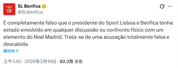在本菲卡官方发声后,科贝记者改了说法“我说在那个更衣室里发生了争吵,本菲卡主席当时也在场。”