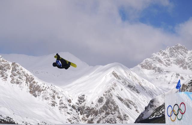 苏翊鸣在单板滑雪男子坡面障碍预赛中