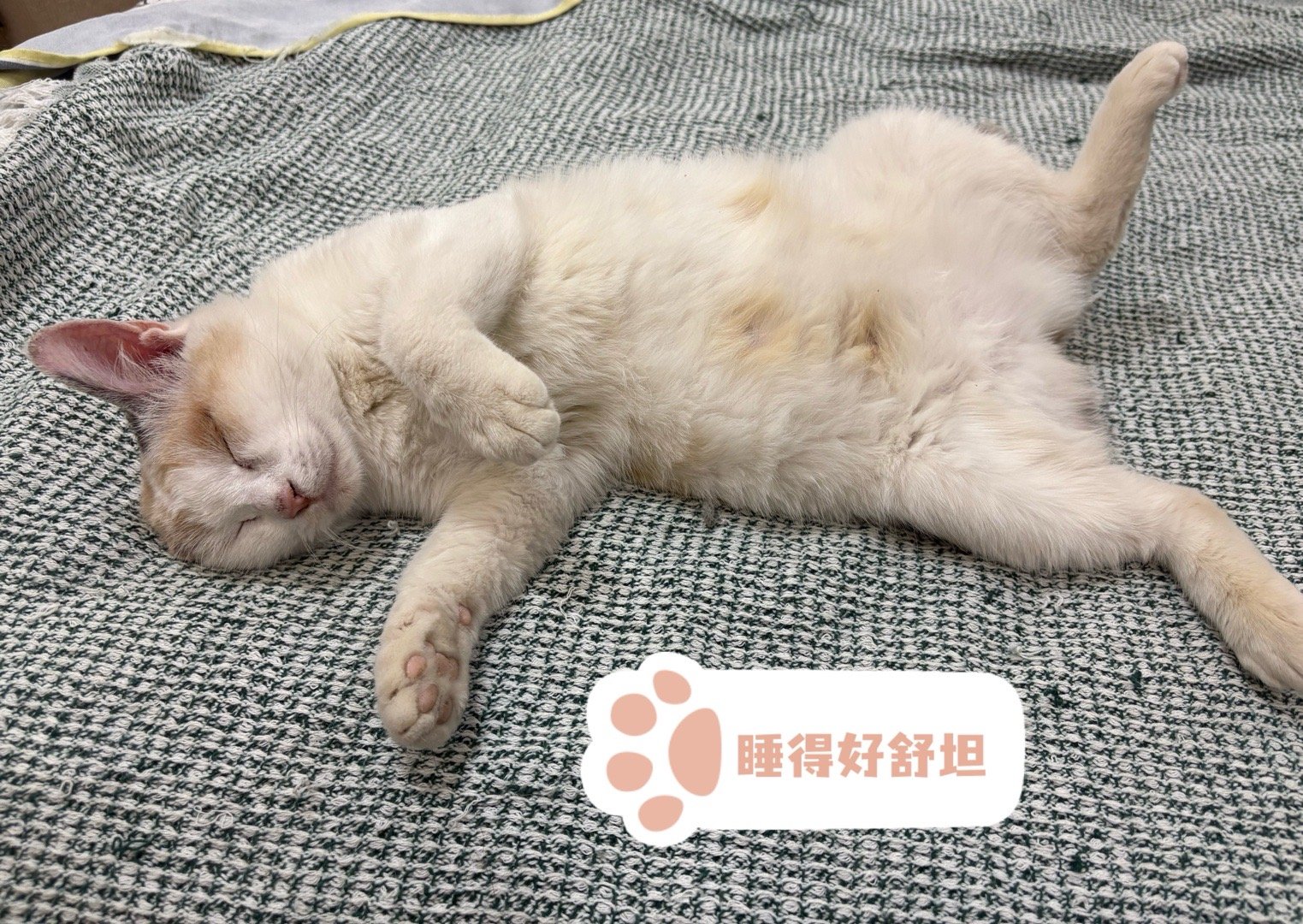 三彩救助回来一个月了~已经能够翻肚皮睡觉。快看不出流浪期的样子了。
