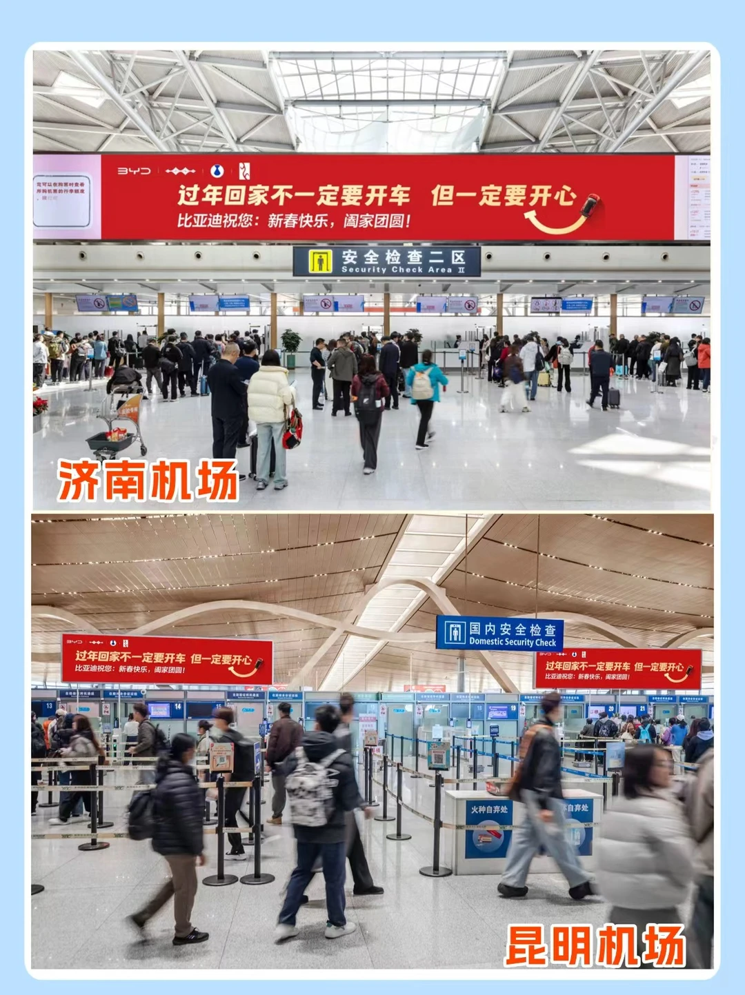 👉🏻当所有车企都在春节卷"自驾回家场景" 比亚迪选择站在用户这边: "不开车也行 开心最重要"🥰 在春运的人潮里看到这句话 真的像被拍了一下肩膀说"别急 开心点"🥹 👉🏻别的品牌在卷续航卷智驾 比亚迪在机场跟你说: "飞机高铁也行 开心最重要"🥰 没有说教 没有焦虑 只有一句"怎么舒服怎么选" 这种"不管你买不买我 我都希望你过好年"的格局 真的很大气🫡 这才是汽车品牌还有的温柔🎉 好奇宝子今年都怎么回家过年的? 欢迎宝子在评论区分享下