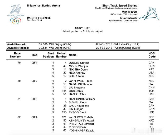 冬奥会短道速滑赛场,今夜将进行男子500米1/4决赛、半决赛及决赛,以及女子3000米接力的决赛,刘少昂林孝埈等队员出战,一起为中国队加油!