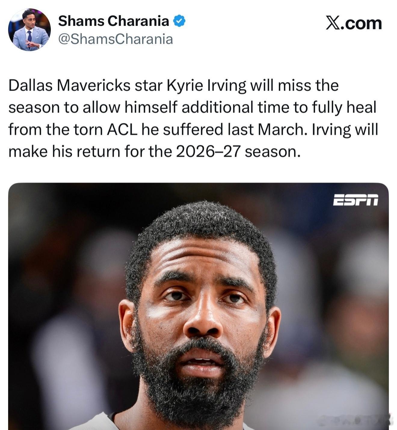 独行侠再遭重创!北京时间2月19日,独行侠官方正式宣布,欧文将缺席2025-26整个赛季,以便为左膝前十字韧带伤势争取充分的康复时间,他计划在2026-27赛季回归赛场。而欧文上一次在场上打球已经是一年以前的事了。