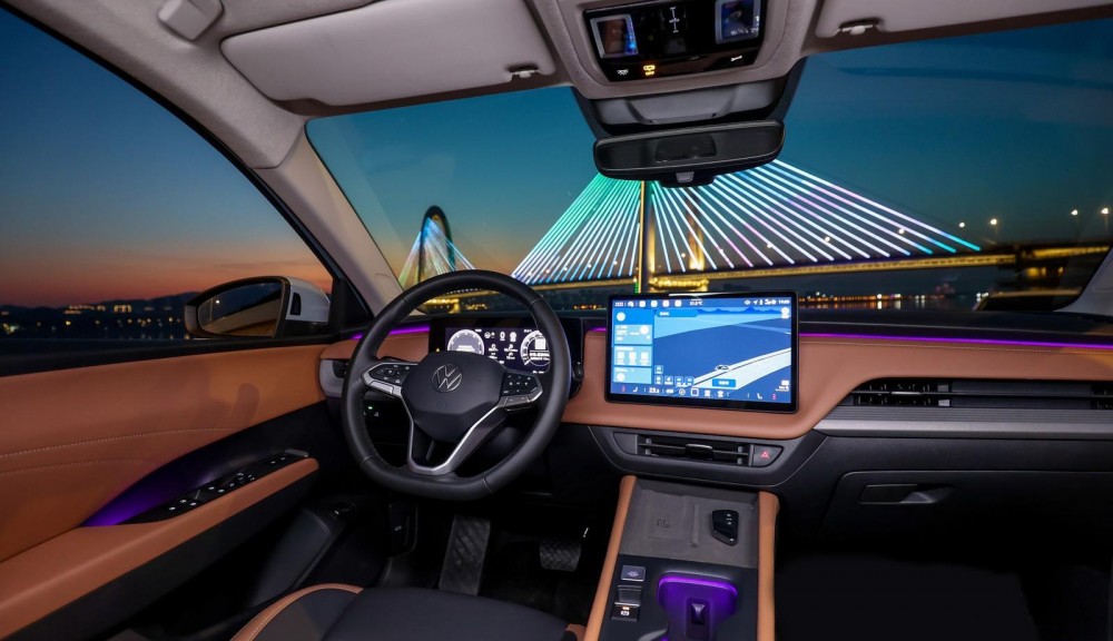在内饰方面,全新速腾S的座舱设计焕然一新,科技感与实用性并重。车内最引人注目的是由12.9英寸中控大屏与10.25英寸全液晶仪表组成的智慧双屏系统。这套系统深度融合了AI大模型,不仅支持AR实景导航,更能实现自然流畅的连续语音交互与全场景语音控车功能。全新的电子怀挡设计不仅操作便捷,也释放了中控台区域,带来了更丰富的储物空间。此外,车内还配备了30色可调的内饰氛围灯等配置,提升了驾乘环境的精致感。