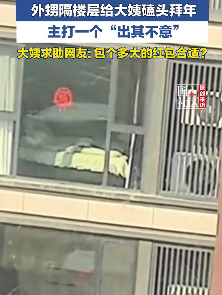这下钱包保不住了!河南项城,女子大年初一在家里吃早饭,就想着看看对面楼的外甥在干嘛,没成想,这一看直接傻眼了,外甥正在床上对着她的方向磕头拜年,而且力道十足,女子也是在网上求助:这种情况我应该包个多大的包合适? 杜女士和妹妹住在同一个小区里,而且两家就住在对楼,基本往对面一看,就能知道他们在家干嘛,当时杜女士端着碗坐在窗边吃早饭,嘴里还嚼着饺子,眼睛习惯性地往对面楼瞄了一眼,这一瞄不要紧,差点让她把饺子喷出来 对面卧室里,她外甥早就准备好了,正端端正正跪在床上,脑袋冲着她这边,咣当就是一个头磕下去。磕完还抬起头瞅瞅,看她还在看,接着又是一个。那架势,实打实的,隔着窗户都感觉床板在晃 杜女士笑得碗都端不稳了。这孩子,怕是早就蹲守在窗边,就等她这一眼呢。她赶紧放下碗,掏出手机就给外甥转钱。这压岁钱不给不行,人家这头都磕到床垫里去了 有网友调侃:这孩子是个人才,拜年都拜出战略眼光了,提前埋伏,精准打击,属于主动出击型选手 还有不少网友晒自己家孩子的同款操作,有在视频通话里磕头的,有在家族群里发磕头表情包的,还有隔着大门磕的,反正只要红包到位,角度姿势都不重要 想想也挺有意思的,以前拜年得上门,得走路,得提着东西。现在倒好,隔着窗户对个眼神,就能完成一套完整的拜年仪式。孩子省了路,大人省了事,红包还是那个红包,年味儿一点没少 说到底,压岁钱这东西,给的是钱,传递的是人情。孩子磕个头,大人给个红包,一来一往之间,年的味道就出来了。至于这头是在门口磕的还是隔着窗户磕的,根本不重要
