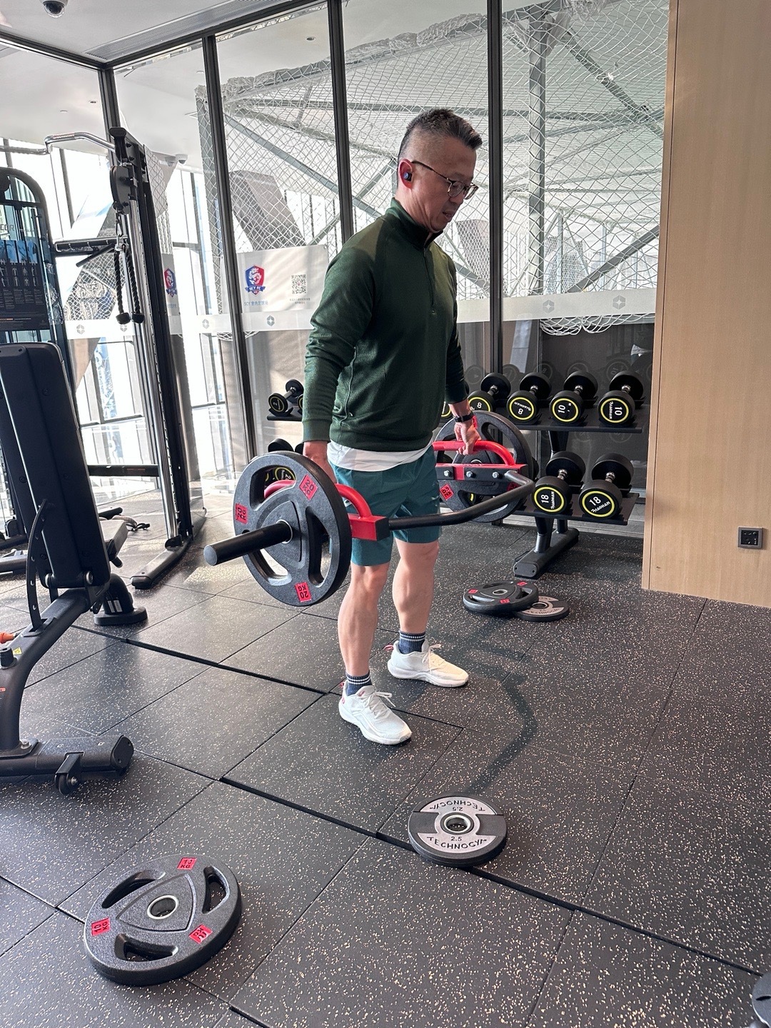 不仅力量区器械真的不错,你们看背景还有一片并不算小的迷你足球场。这种硬拉设备和拉伸设备都是我的健身房里也没有的,拉伸小腿的设备也非常酸爽,如果我从年轻时都能注重这么拉伸,小腿就不至于这么难看了