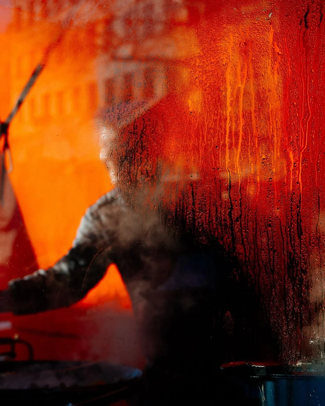 用带雨的玻璃当前景,氛围感直接拉满