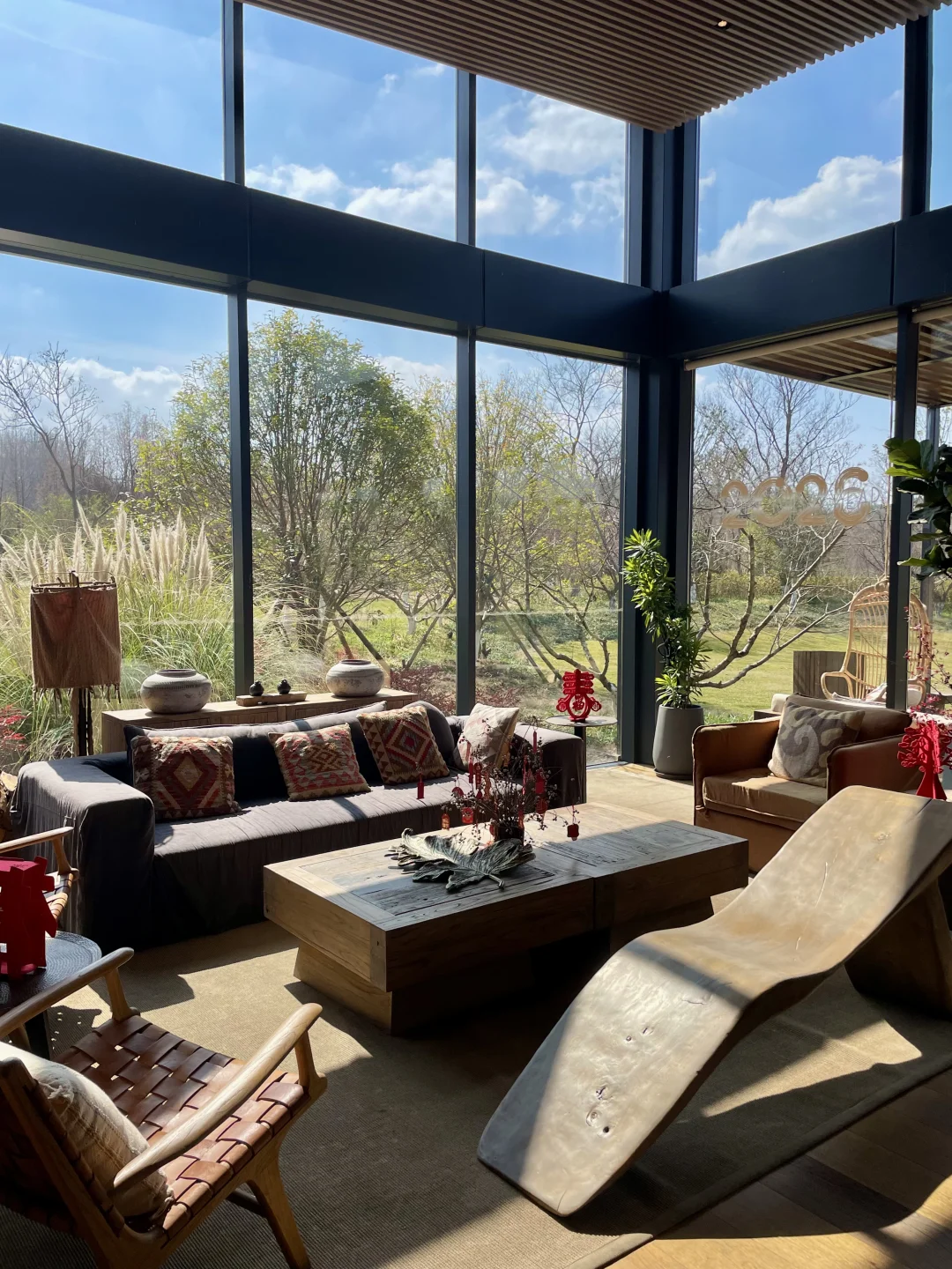 原木风装修+落地窗,推开门就是自然清新
