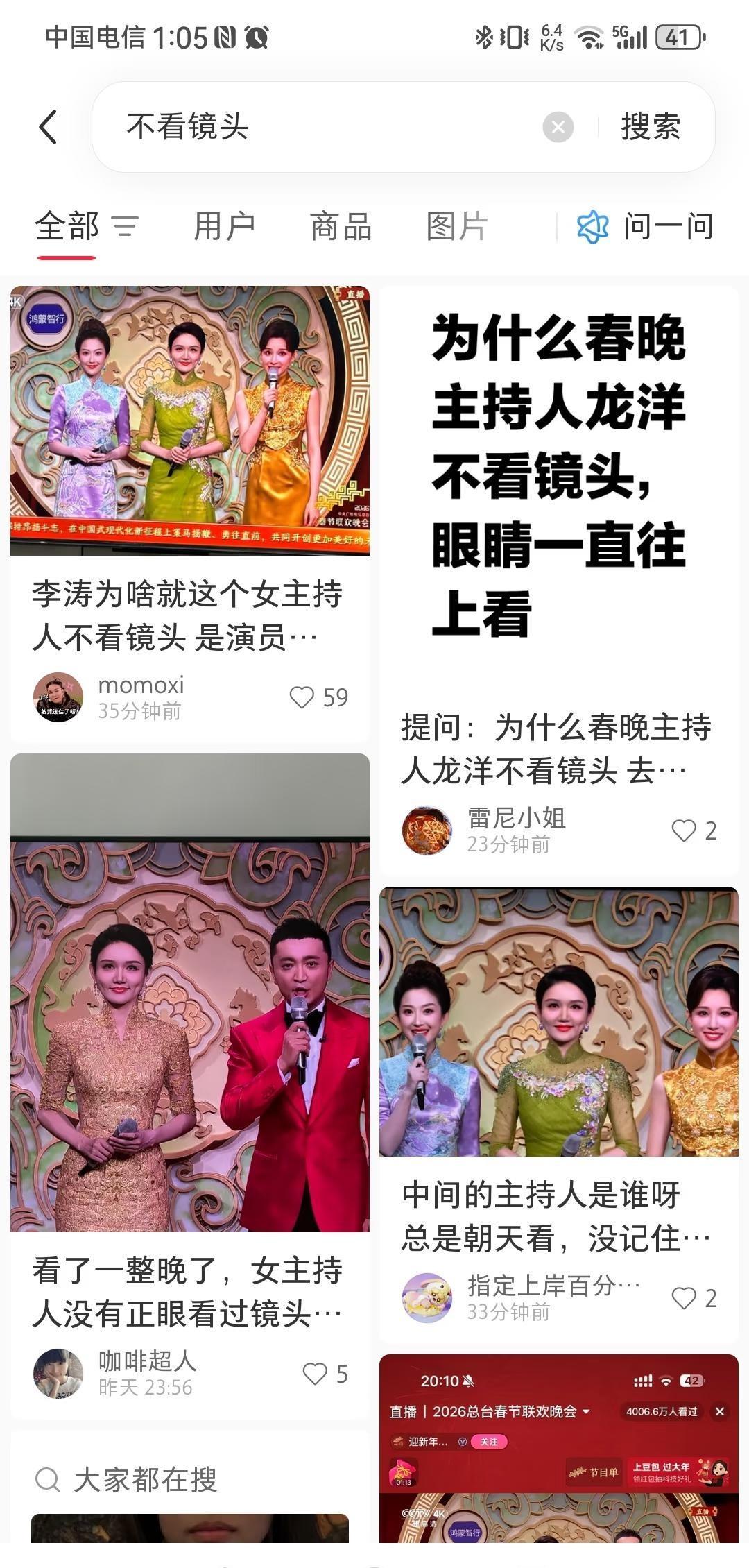 她看提词器? 呸! 春晚根本没那玩意,你被眼球骗了! 龙洋瞳孔直勾勾盯着镜头,眼皮却少得像没遮挡。 你以为她在瞟上方,其实那是她眼型诡异,大远景一拉就给你制造幻觉。 她反应快得像刀子,现场脱稿救场是家常便饭,压根不需要小抄。 别再拿外行眼光瞎揣测内行,那不是看提词器,那是她眼里有光;那不是业务不精,那是她专业到让你震惊。