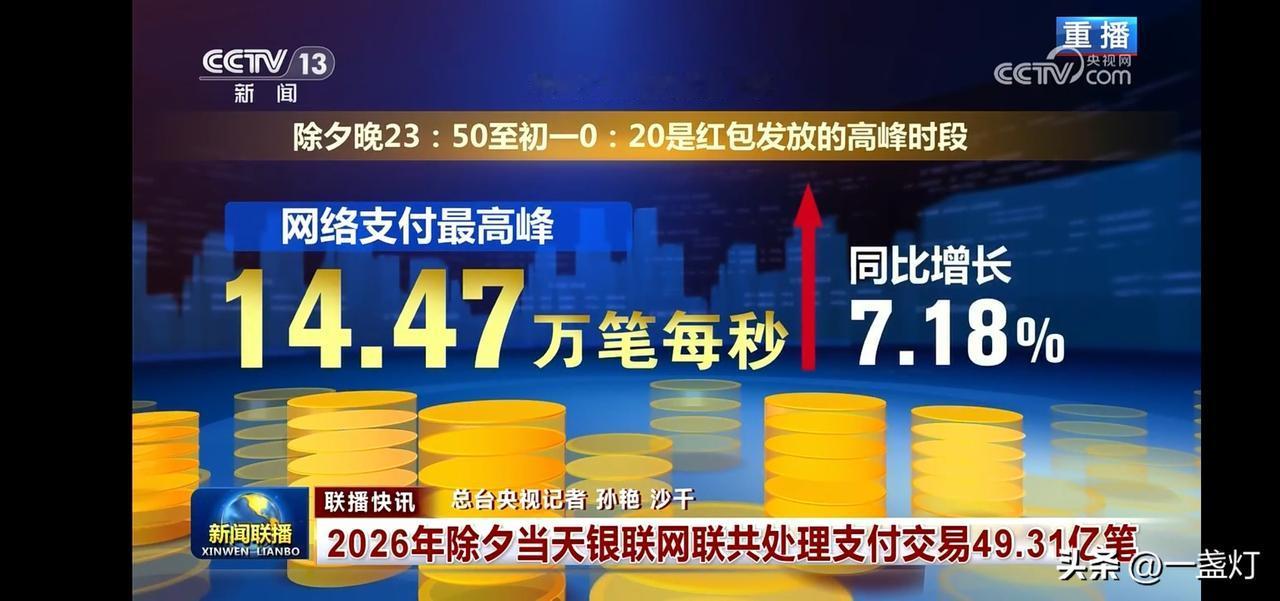 除夕当天,银联支付交易49.31亿笔。