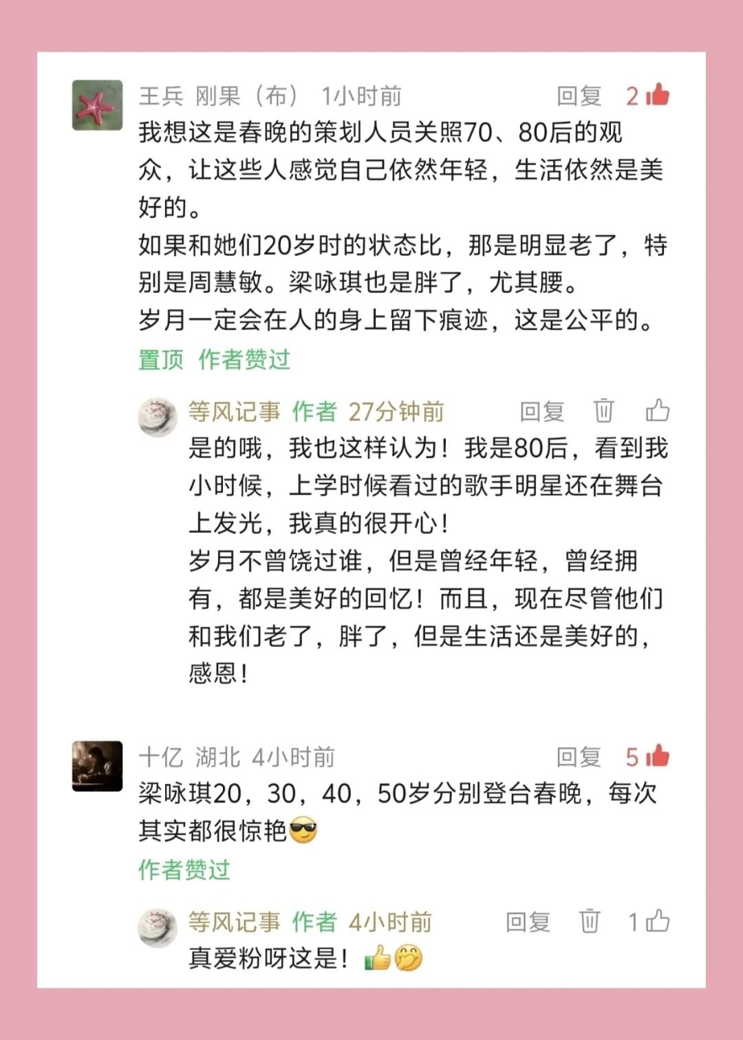 春晚《立春》十美,美在无惧岁月。马年春晚《立春》堪称年度名场面!周慧敏、梁咏琪等十位女星同台,从58岁到27岁,横跨四代人。 有人吐槽“老阿姨”,我却看到中式美学的极致绽放。周慧敏依旧纯净,梁咏琪清冷知性,薛凯琪甜度满分,希林娜依·高活力满满。 年龄从不是美的枷锁。这首《立春》,唱的是春意,更是女性各阶段的从容与明媚。十美齐聚,寓意十全十美,这才是最动人的春晚祝福!