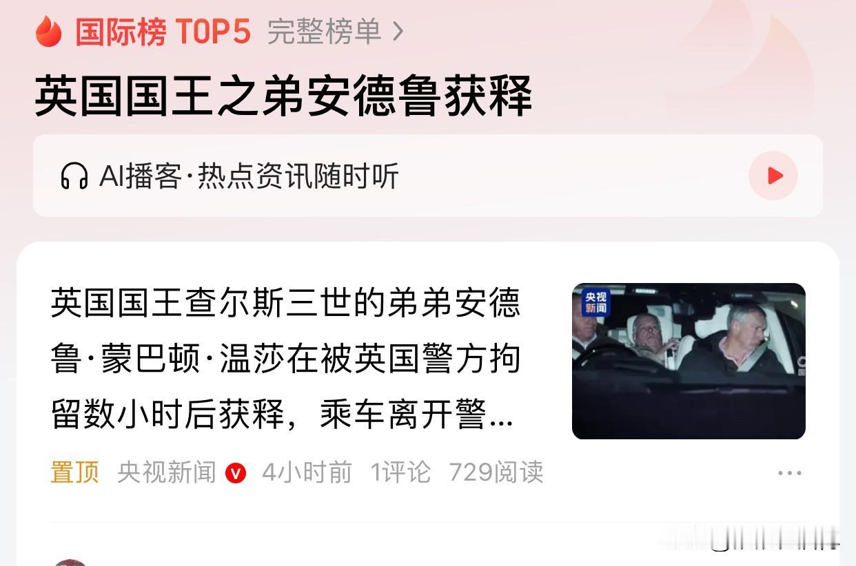 真是活见久!我发现英国王室的“司法游戏”好像还停留在童话世界!英国国王查尔斯三世的弟弟安德鲁,给世界上演了一出“快闪式”拘留。清晨因涉嫌“公职人员不当行为”被警方带走,结果几个小时后就大摇大摆地乘车离开了警察局。英国警方轻描淡写地补了一句:人放了,但调查继续。这操作,怎么看都像一场精心排练的“政治秀”。安德鲁卷入的是何等丑闻?因涉嫌“公职人员不当行为”被逮捕,这指控足以让普通人面临长期调查和严厉指控。可到了这位王子安德鲁这里,流程变成了“清晨逮捕-短暂拘留-迅速释放”。尽管他已被剥夺了“殿下”头衔和王室资助,但王室的光环和特权似乎仍在司法程序中若隐若现。查尔斯国王第一时间发表声明,表示王室将“充分支持”调查,姿态做得十足。但这番表态,配合上弟弟的“闪电获释”,总给人一种“高高举起,轻轻放下”的既视感。严重的指控,对应的是儿戏般的拘留时长。这不得不让人怀疑,所谓的“调查”到底是为了彻查真相,还是为了平息舆论、走个过场?王室与司法系统之间那层微妙的界限,再次被模糊了。公众看到的,可能不是正义的彰显,而是一场维护体面的默契表演。这场“游戏”的终点,恐怕不是法律的审判,而是又一个被时间冲淡的丑闻。