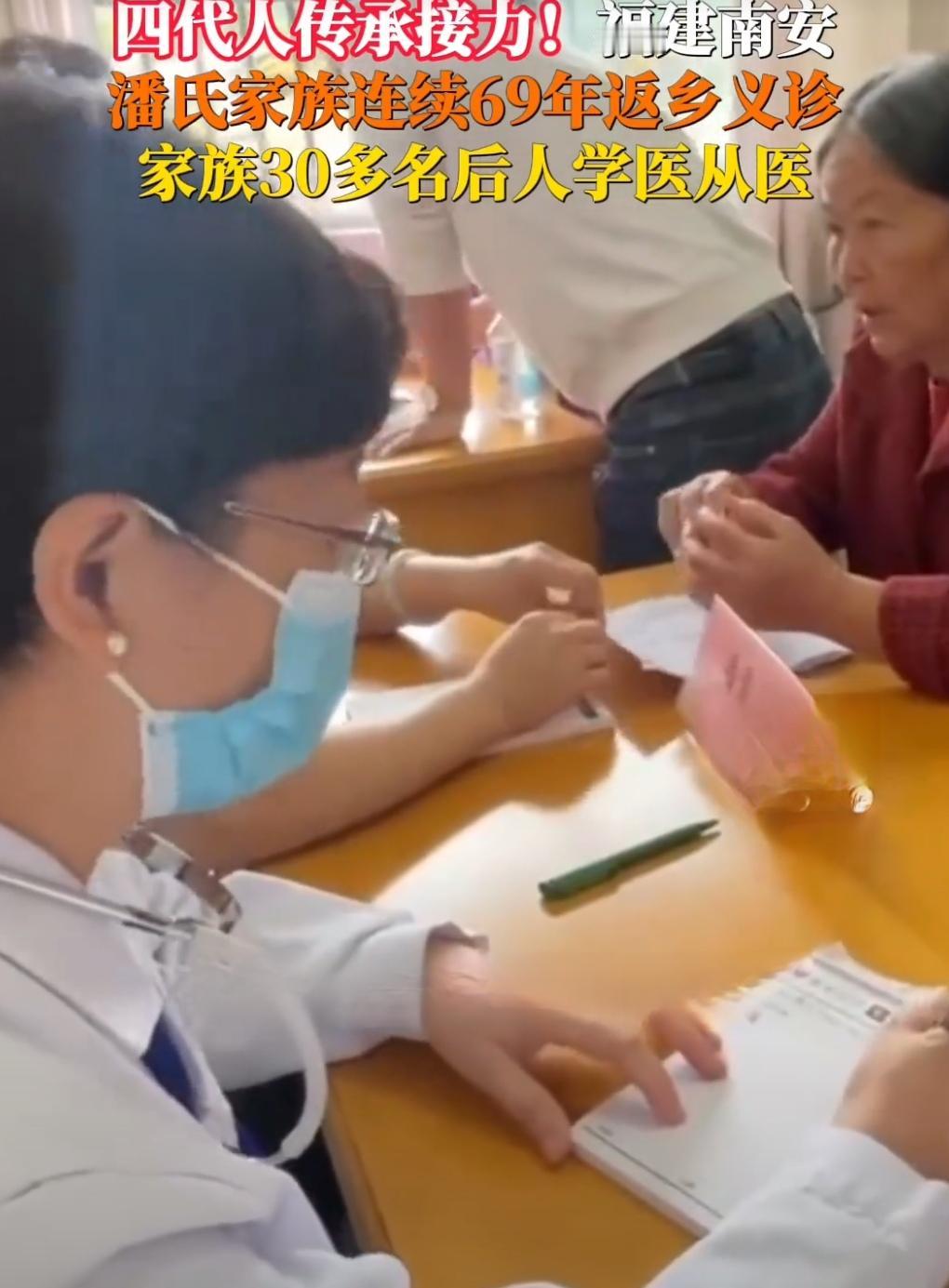 2026年2月18日,正月初二,福建南安乐峰镇湖内村的明英苑里格外热闹。近30名潘家医生从全国各省市赶回来,把自家院子变成了“流动三甲医院”。 测血压、看诊、开方、答疑,四代人接力,这是他们坚守义诊的第69个春节,村里的老人小孩都知道,这天不用跑大医院,潘家的“健康团圆饭”准时开席。 为什么正月初二不走亲访友,偏偏要扎堆义诊?时间拉回1958年,潘明继、施增英夫妇新婚返乡,见乡亲们缺医少药,看病要走几十里山路,便许下约定:每年正月初二回乡义诊。 这一诺,成了潘家雷打不动的家规,从夫妻俩到第四代,不是医生的家人也来当志愿者,医者仁心早已刻进家族基因 。 如今,我们总说“团圆”,潘家却把团圆过成了“奉献”。在快节奏的时代,有人忙着赶路,他们忙着赶路回家治病救人;有人把家风挂在墙上,他们把家风写在乡亲们的健康本上。 这份坚守,不仅是家族传承,更成了当下最动人的“春节新民俗”,让年味多了份温暖的重量。 期待这份爱心接力永远不停歇,期待更多人被这份善意感染。愿每一个乡村都能有这样的“健康守护”,愿这份跨越69载的医者仁心,在马年续写更温暖的篇章,让爱与责任,成为最长久的团圆。南安照雄堂