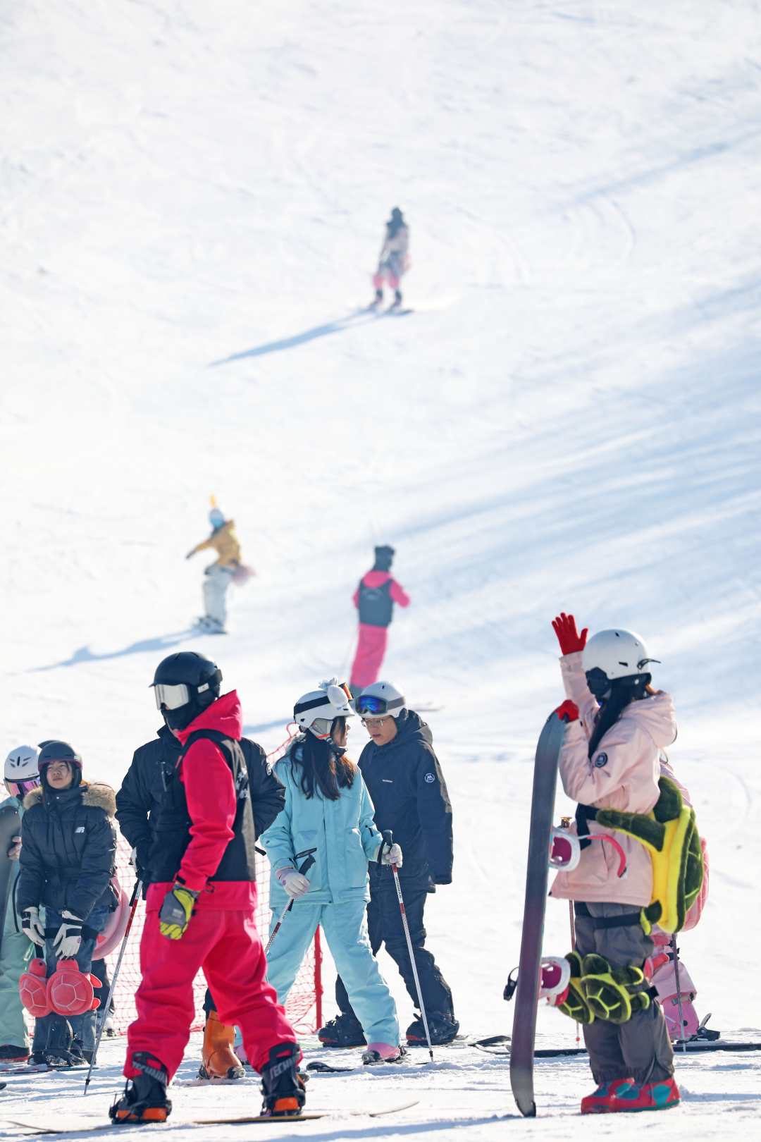 2月20日,内蒙古自治区扎兰屯市金龙山滑雪场,游客体验滑雪乐趣。假日期间,金龙山滑雪场迎来客流高峰。