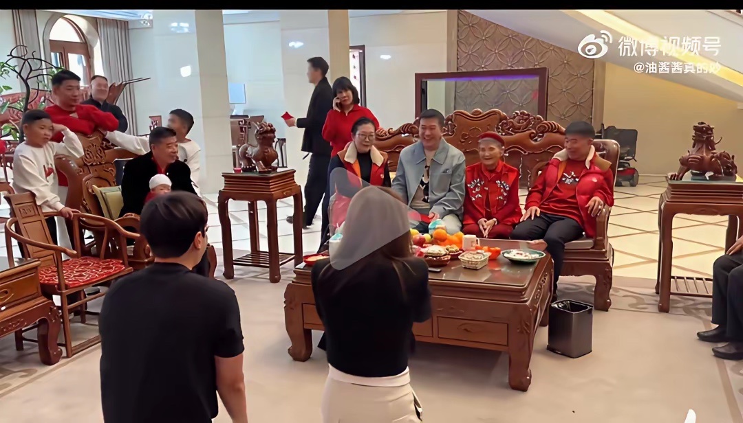 杨子晒过年视频,家里小辈挨个给杨子磕头,家里人真多。