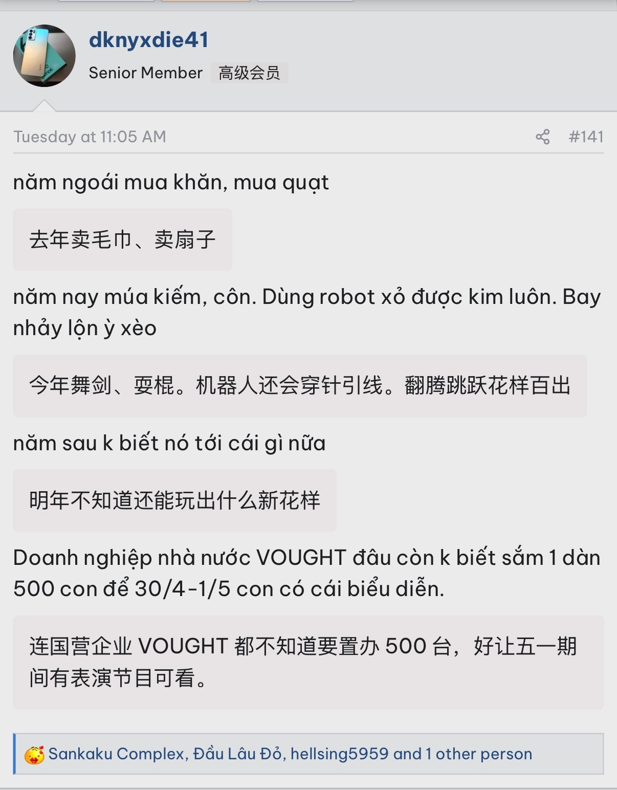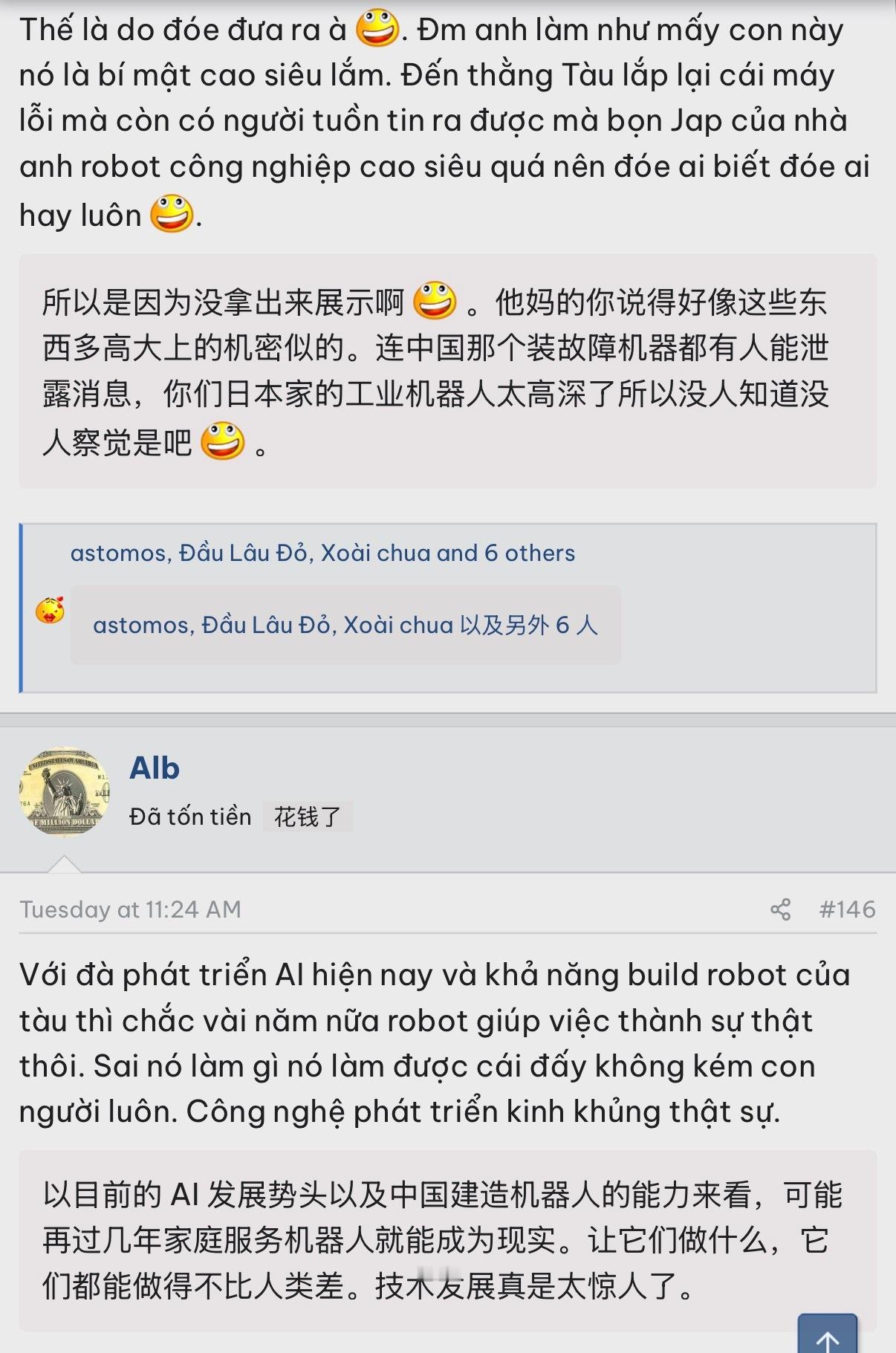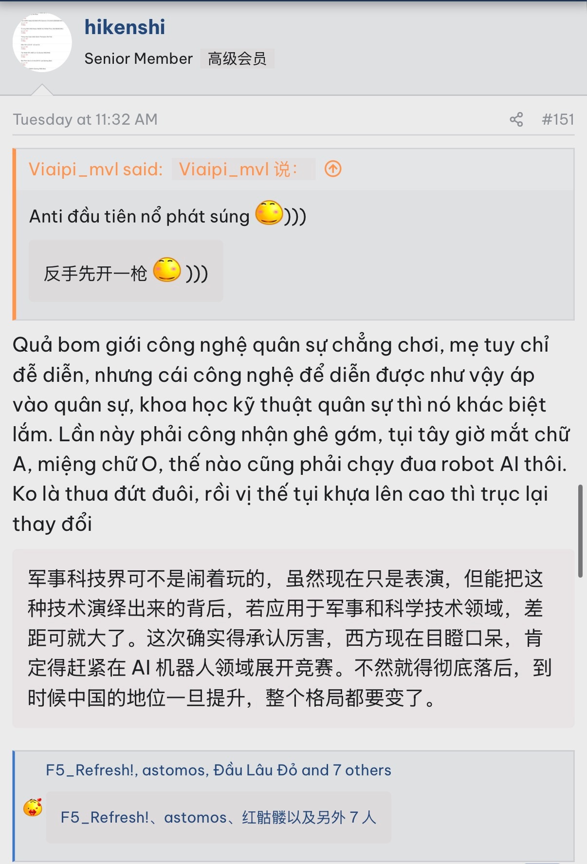 🔻一些越南网民称我们为“大哥”、“兄长”,自称“弟弟”,称日本为“矮子”。🔻然后越南网民中的中吹大战日吹、美吹。🔻via voz.vn海外新鲜事热点现场机器人租赁订单已排至3月
