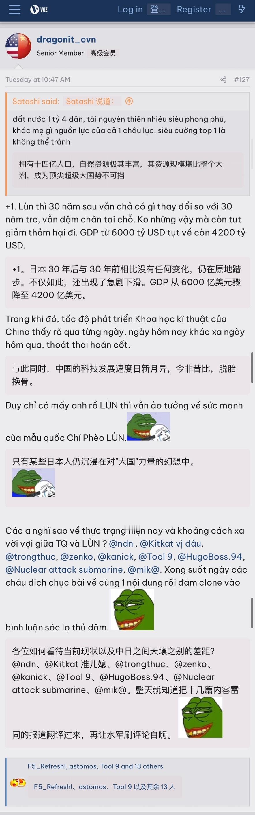 🔻一些越南网民称我们为“大哥”、“兄长”,自称“弟弟”,称日本为“矮子”。🔻