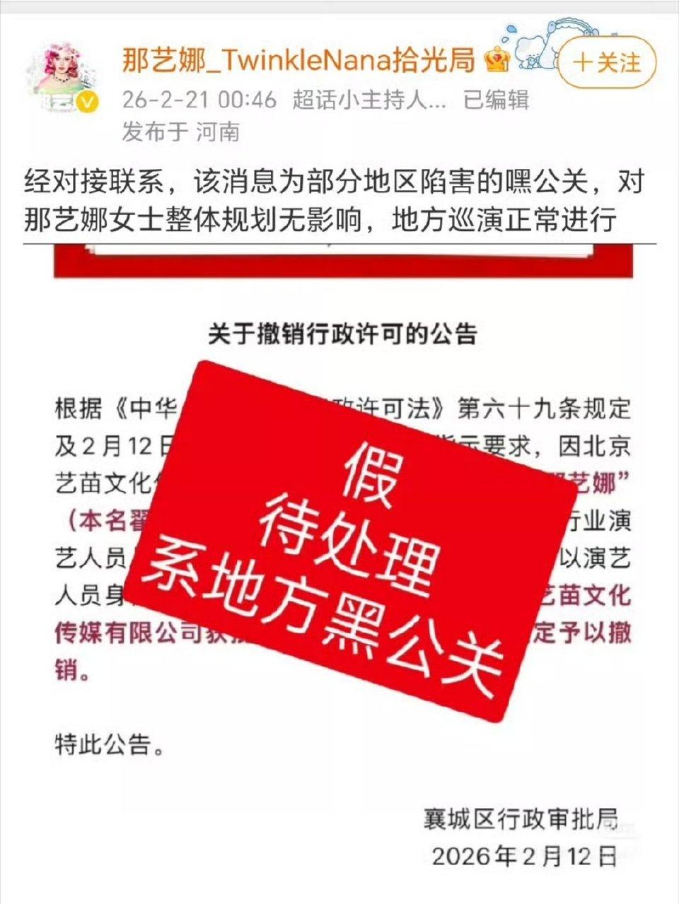 2月21日,歌手那艺娜突然引发了争议,起因是湖北襄城政府突然公布取消那艺娜原定于在襄阳举办的演唱会,并把其定性为劣迹艺人。 有人翻出了那艺娜2022年在直播时把自己伪装成俄罗斯人卖货,说自己卖的俄罗斯特产,其实卖的的商品是我们国产的商品,后面被举报封号了。 现在那艺娜在襄阳的演唱会被取消了,没想到那艺娜的工作室却说是有人故意捏造那艺娜,襄城发布的公告是假的,那艺娜的演唱会会如期举行。 那艺娜工作室的这一操作一下把网友给整不会了,还是第一次见到有人敢说政府发布的公告是假的。 敢和政府硬钢那艺娜这下肯定要被封杀了,说真的如果那艺娜工作室不发布那条声明,而是真诚道歉,事情可能不会闹的这样大,现在她不仅不能在襄城举办任何大型活动了,还会被网友抵制,因为她以往假唱和卖“假货”的黑料都被挖出来了。