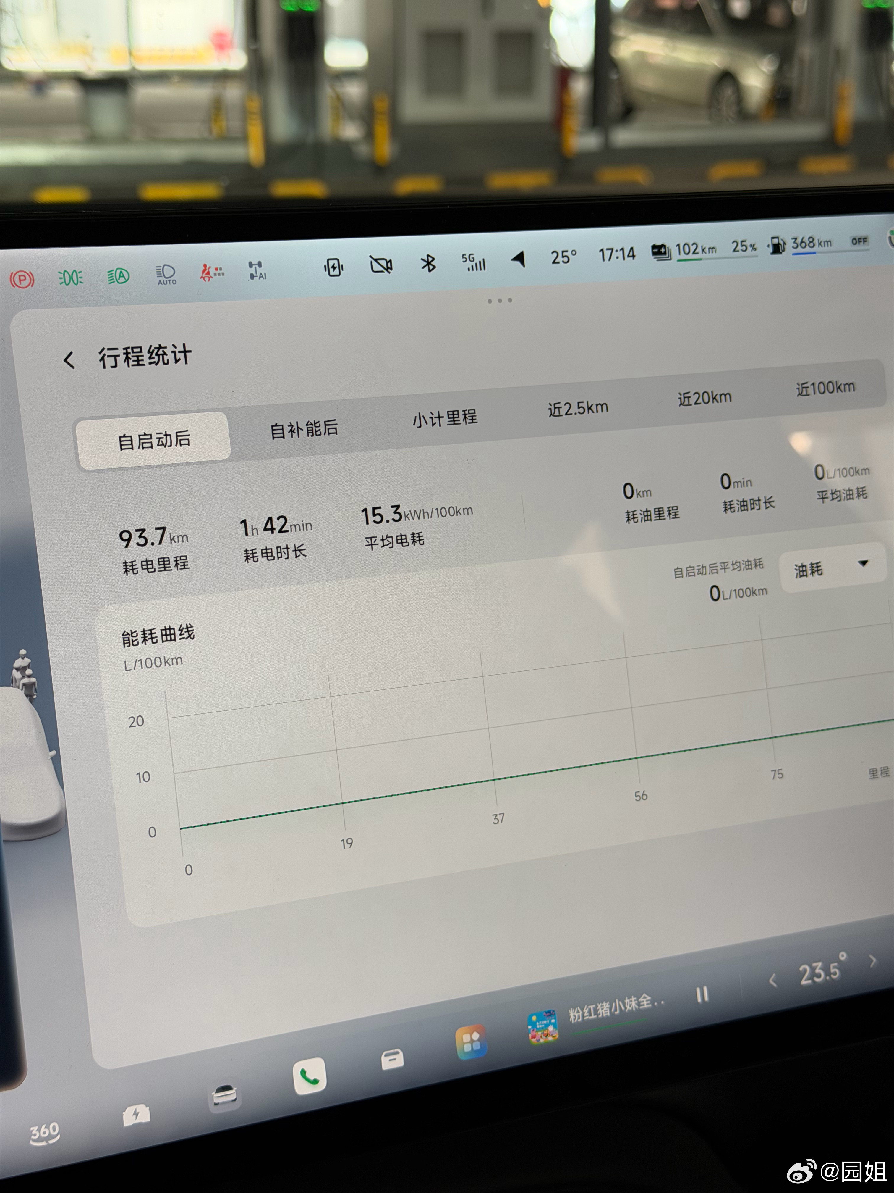 #开着小鹏回家过年#今天去顺德一口气把小鹏G7跑没电了,晚上回来刚好路过一个小鹏超充站,800V的桩,必须补满呀,看了一下今天反程能耗,全程80%高速,电耗15.3,还真是省电,毕竟车上两大两小一家四口,还有三箱行李。充电速度也行呀30%~80%才9分钟,而且这可是增程车,太舒服了,随便休息下,去个洗手间回来就够用了~