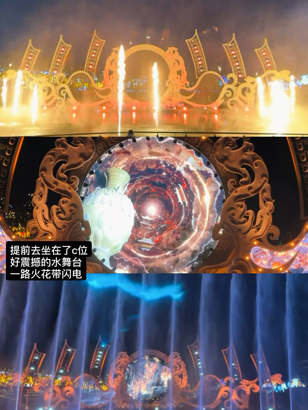 1️⃣泱泱齐风,大型水上舞台秀!这个现场看特别震撼,建议看19:00那一场,看完20:00现场还有打铁花