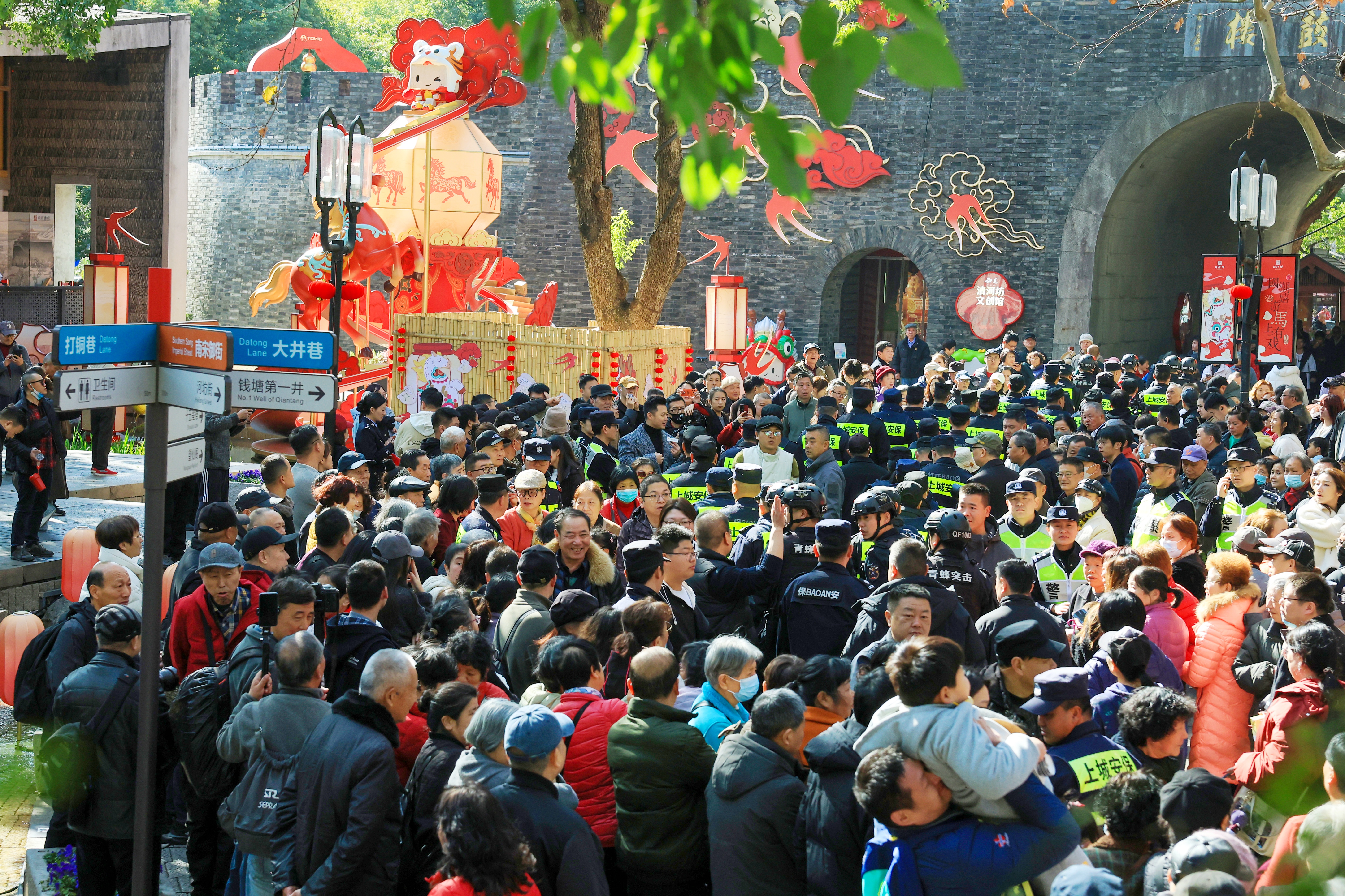 作为杭州工业遗产活化的代表项目,杭钢公园保留了高耸的烟囱、锈迹斑驳的管道等工业元素,同时融入了商业街区、公共广场等功能空间。此次新春市集期间,园区不仅设置了非遗手作、特色美食等摊位,还推出了龙年主题装置展,复古工业风与新春氛围碰撞出独特的城市烟火气。