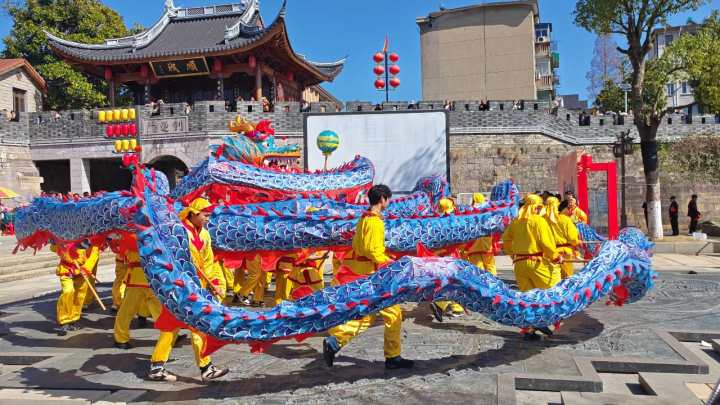 小白兔白:新登古镇,龙灯竹马迎财神,热闹喜庆年味足。