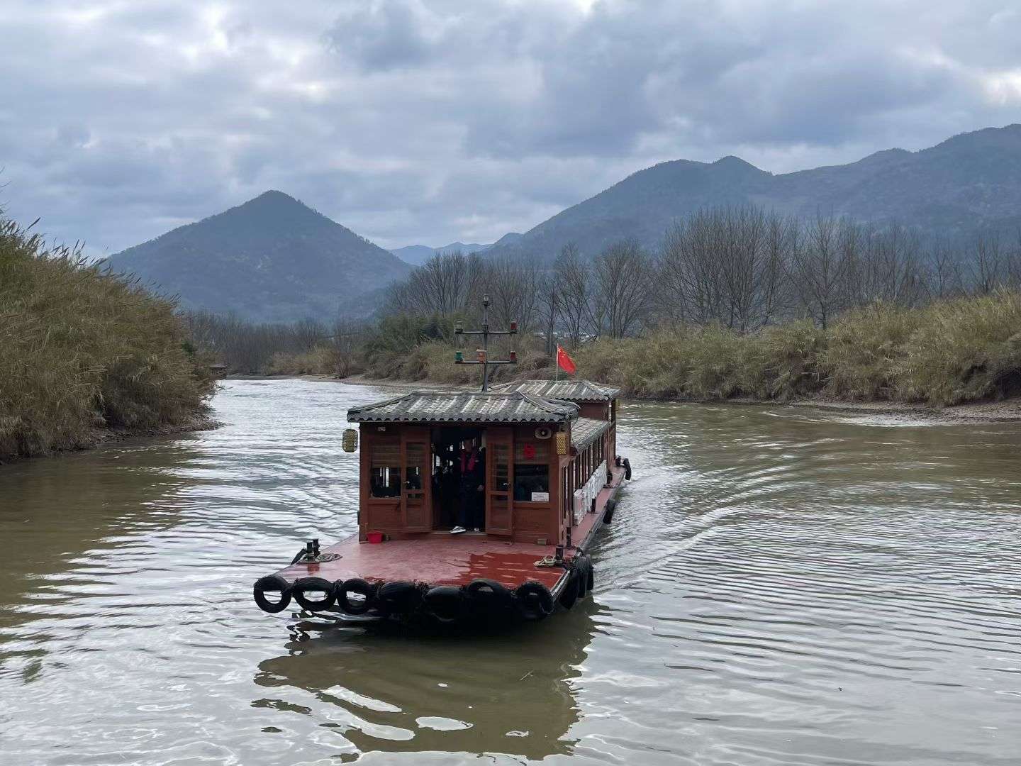 新春漫步丽水古堰画乡,碧波之上画舫轻摇,红灯笼装点着古街