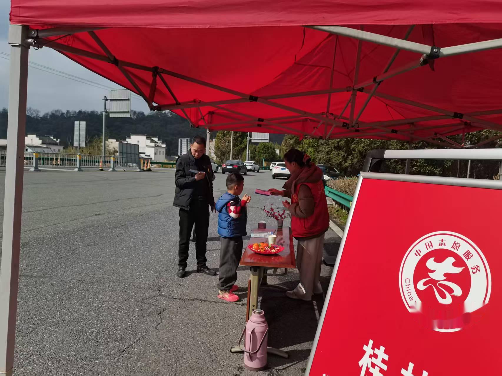 “您好,欢迎回家,注意保持安全车距!”“这里有热水,您需要吗?”在歙县东高速出口,桂林镇“暖冬行动”志愿服务点的“志愿红”格外醒目。针对春节期间返乡车流高峰,桂林镇组织党员志愿者在这里设立暖心服务站,为过往司乘人员提供便民服务。一句句暖心的问候,一次次贴心的帮助,让凛冽的寒风多了几分暖意,也让返乡之路变得更加温馨顺畅。