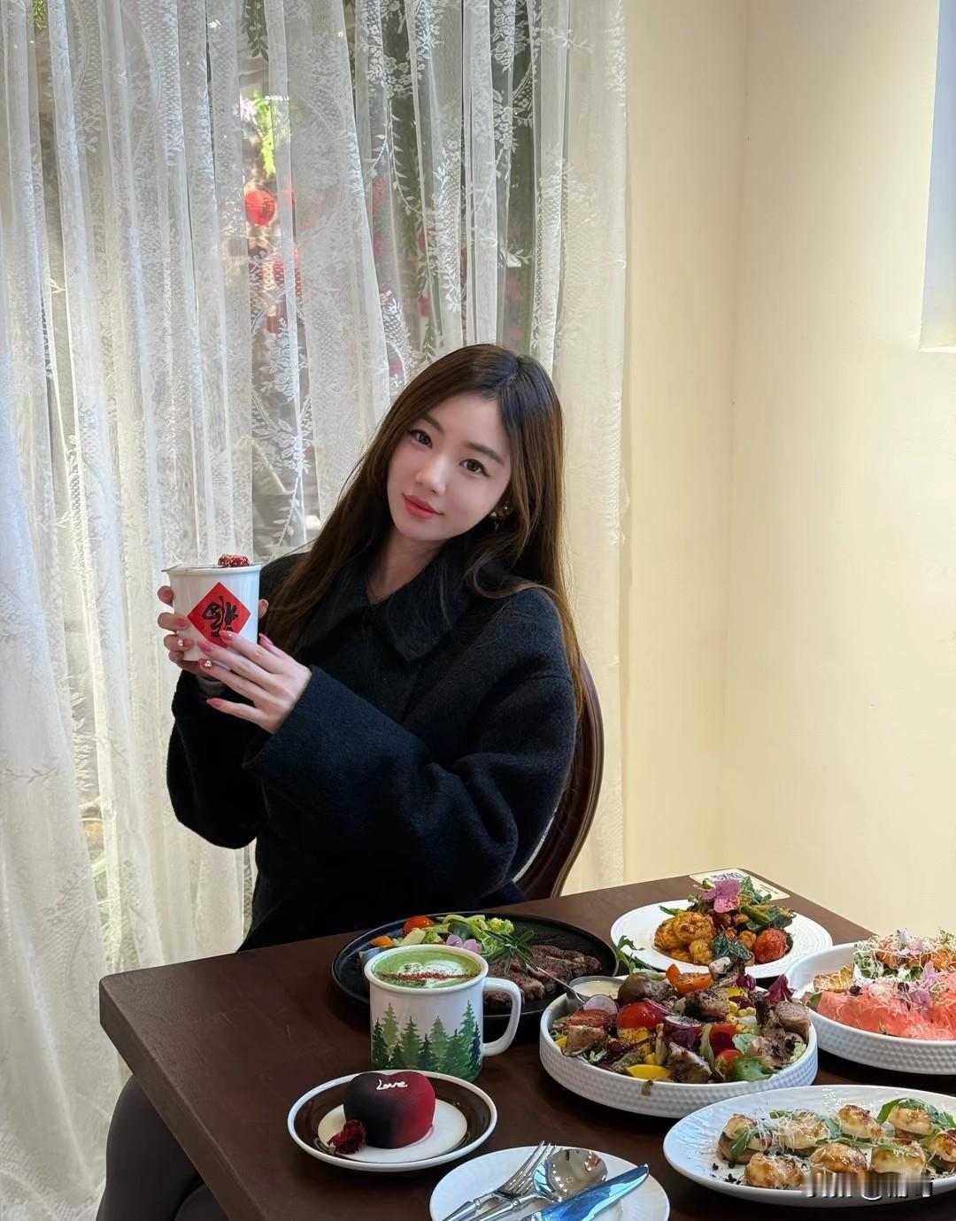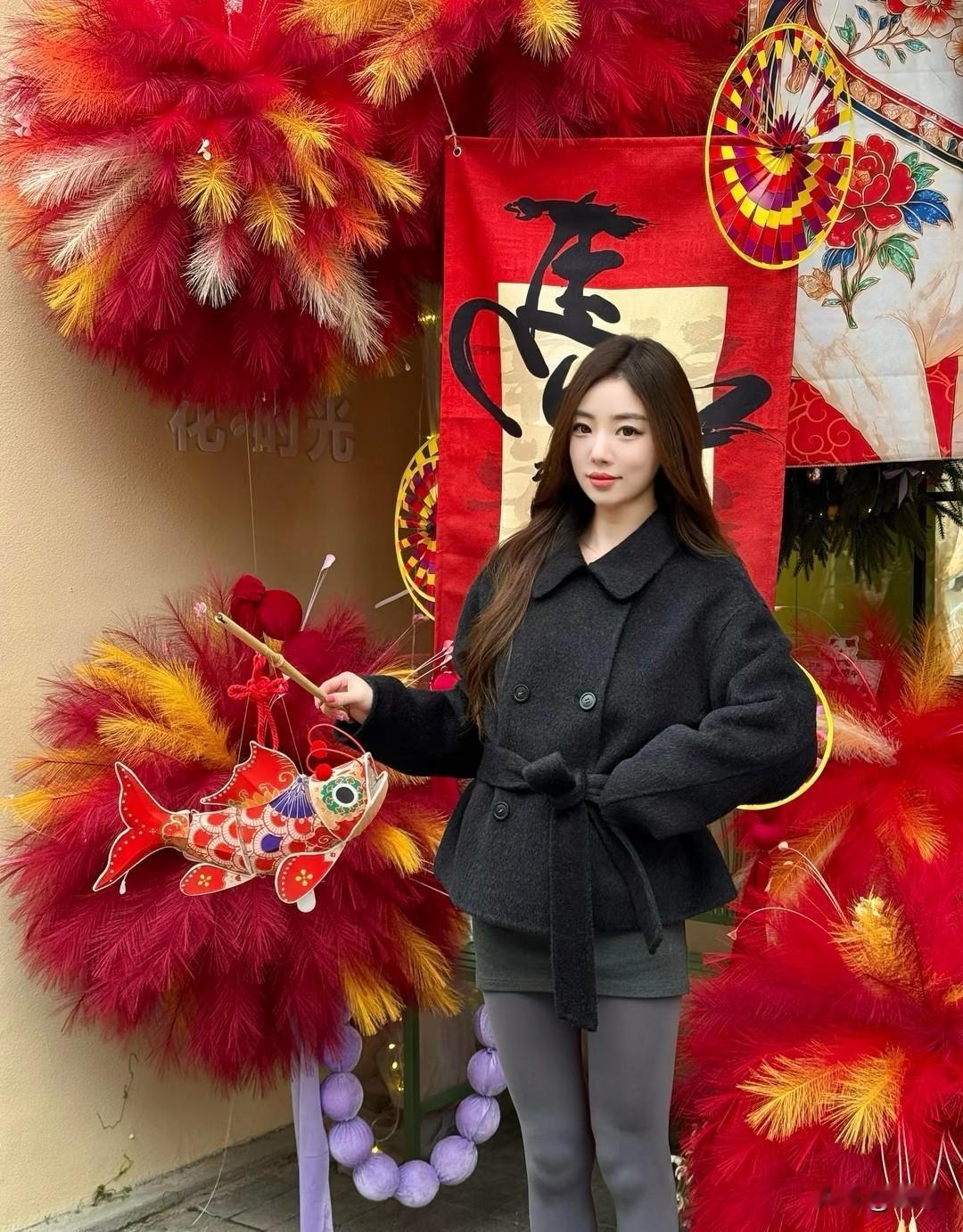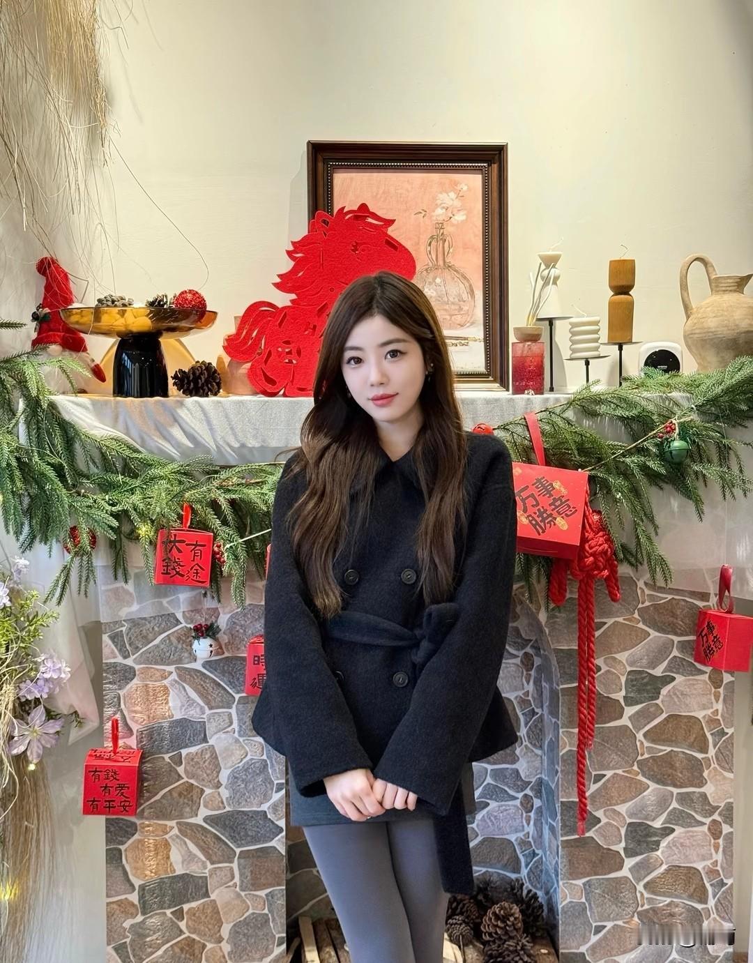 这套穿搭是秋冬咖啡店出街的松弛范本!黑大衣+灰调内搭的同色系组合简约又高级,毛绒
