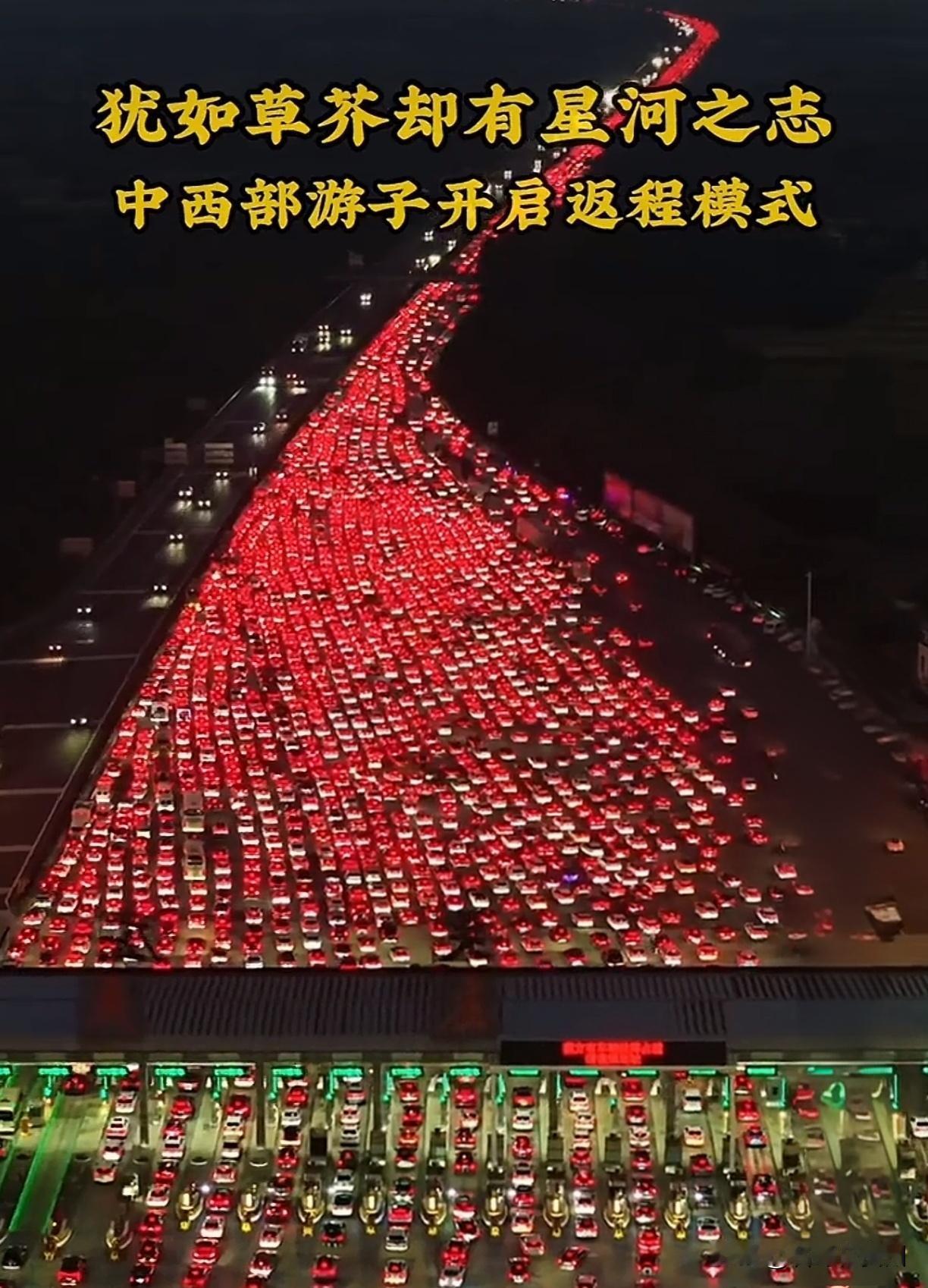 7100万辆车堵路上!正月初六,全国高速把车主堵到破防 如果你现在正堵在高速上刷到我,啥也别说了,先鸣三声笛!咱们都是难兄难弟! 今天是2026年2月22日,正月初六,我滴个亲娘嘞,全国高速彻底“爆”了!交通部预测今天公路流量要干到7100万辆次,创了春运历史新高 。7100万辆车首尾相连,能直接给地球绑上8圈“中国结”! 放眼望去,京港澳、京沪、济广这些大动脉,现在全变成了“移动停车场”。有兄弟早上8点从老家出发,眼看太阳都要落山了,还没出本市地界。服务区更夸张,开水都得靠抢,泡面直接断货,上个厕所排队的功夫,前面又堵出去两公里 。 这还不算完,老天爷也来“添乱”。寒潮、雨雪、沙尘组团上线,北方降温超10度,南方大雨哗哗的,这哪是返程啊,这分明是现实版的“取经路”,不经历个八十一难都回不去那个工位 。 最惨的是谁?新能源车主!别看现在充电桩普及率高了,可架不住车多啊。有车主吐槽,10点到24点全是充电高峰,排队3小时起步,电量掉到10%连空调都不敢开,生怕在寒风中“趴窝” 。 当然,坐火车的也别乐呵。今天铁路预计送客1793万人次,车厢里过道全是大包小包。打开一看,妈塞的腊肉、姥姥装的土鸡蛋、还有那活蹦乱跳的老母鸡——这哪里是行李,这全是老家沉甸甸的“爱”啊 。 ⚠️ 给堵在路上的你提个醒,这几句话能救命: 第一,万一刮了蹭了,千万记住“车靠边、人撤离、即报警”,别在车道上看热闹 。 第二,高速免费到明晚(23日)24点就截止了,别为了省那点钱玩命狂飙,安全到家比啥都强 。 第三,这时候骗子也冲业绩呢,收到什么“航班高铁故障要改签”的链接,直接挂掉!全是坑 。 这一眼望不到头的红尾灯,堵的是车,奔赴的却是生活。 哪怕归途再难,只要方向盘握在手里,家就在心里。 今日灵魂拷问:你现在堵在哪条高速?或者你返程开了几个小时?来,发个定位,找找同款“堵友”,看谁比谁更惨!
